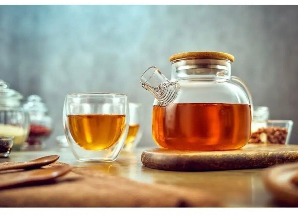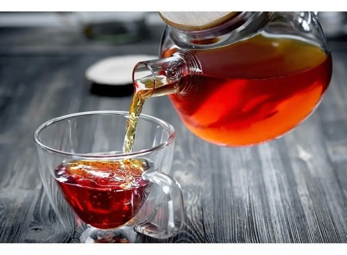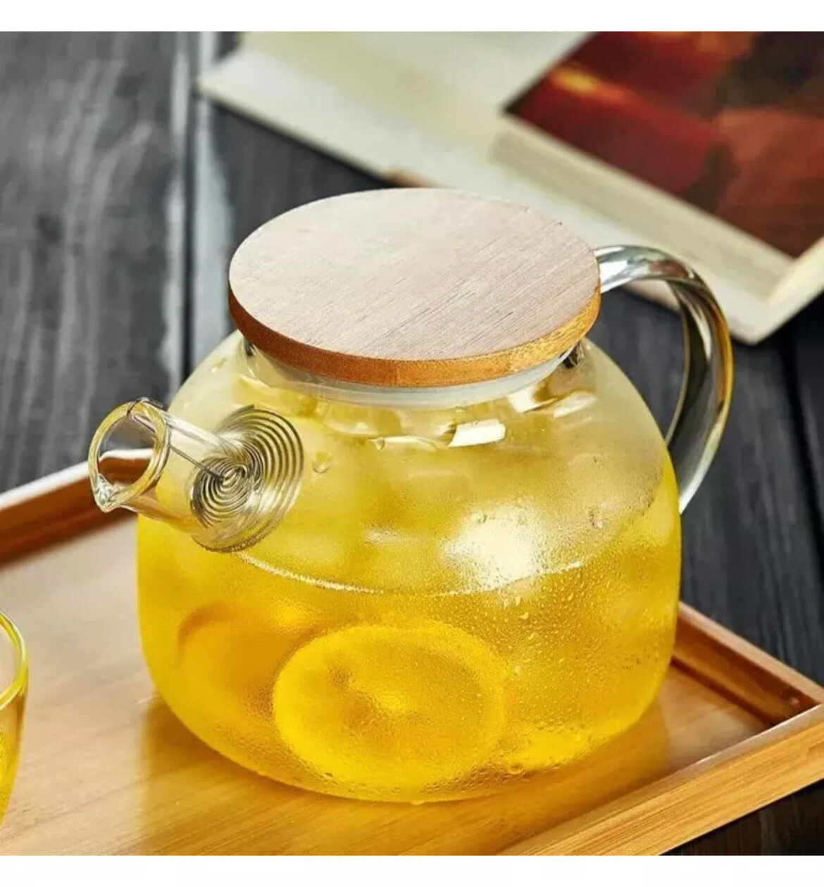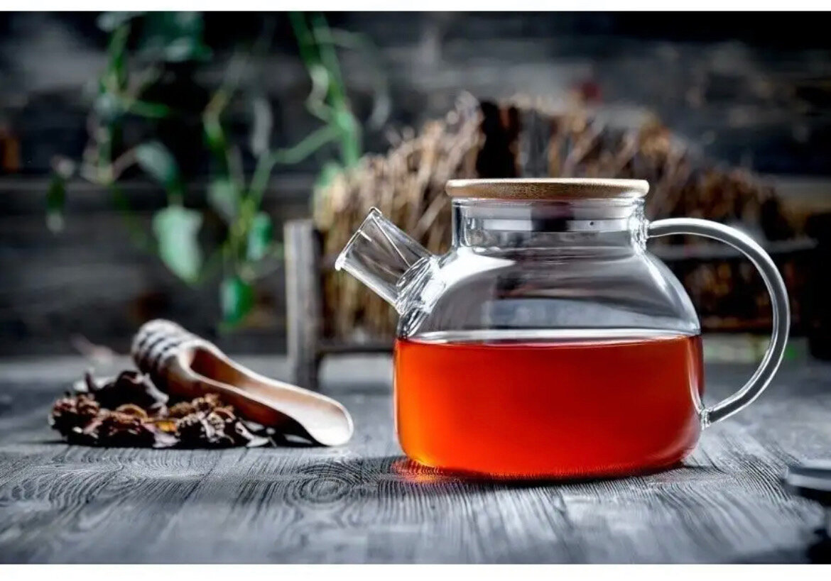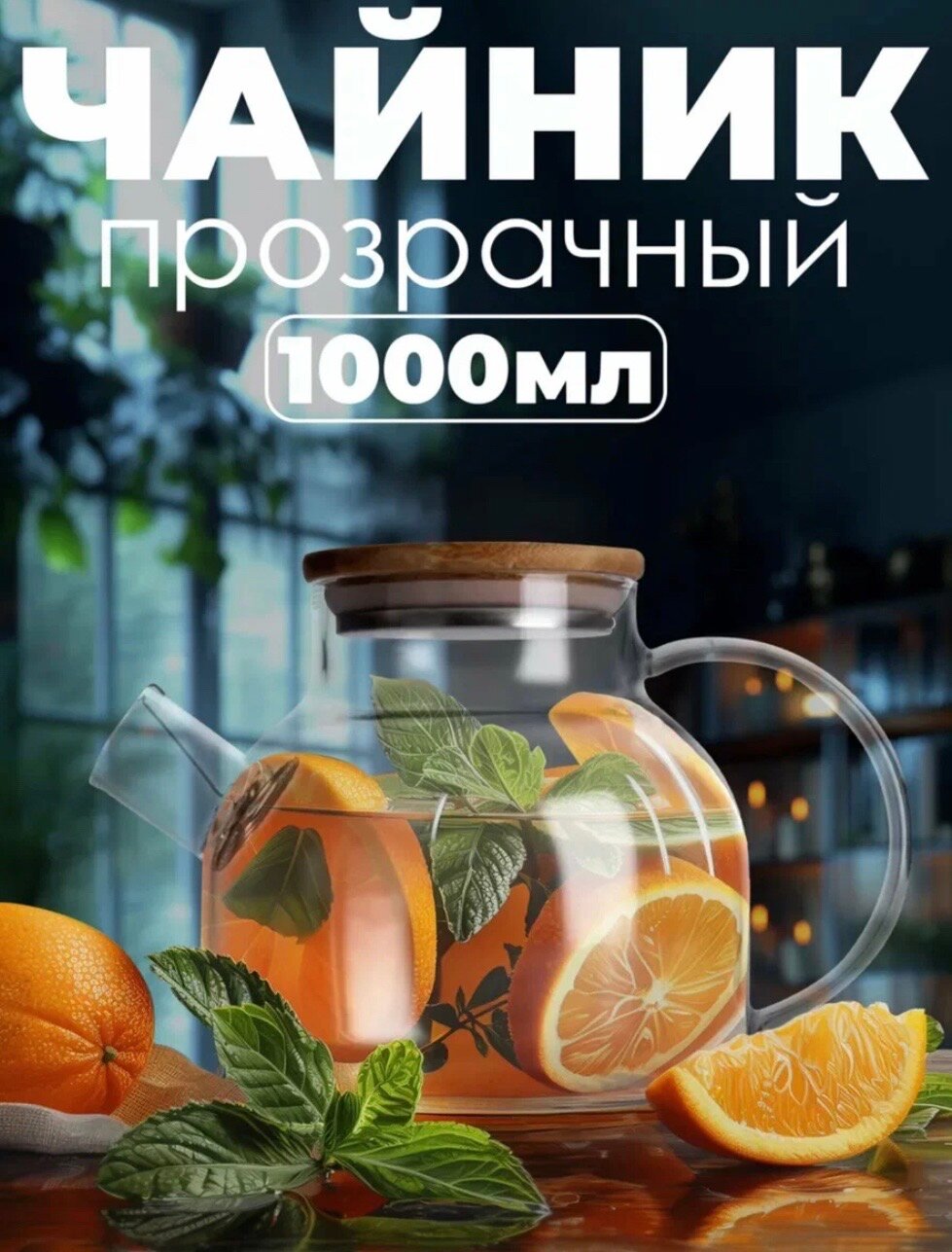 Чайник заварочный стеклянный с бамбуковой крышкой 1л, бочонок интересное: