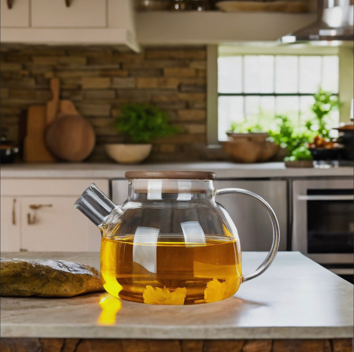 Купить Чайник заварочный стеклянный с бамбуковой крышкой 1л, бочонок