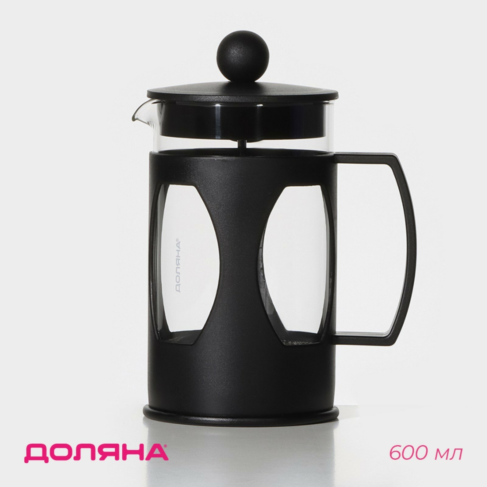 Купить Френч-пресс Доляна Оливер, 600 мл, цвет чёрный Доляна 4940432 .