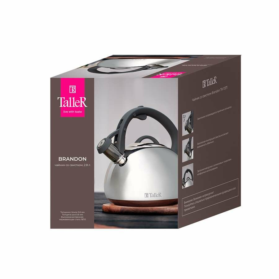 Чайник для плиты TalleR TR-11371 Брэндон, 2.8 л, нержавеющая сталь