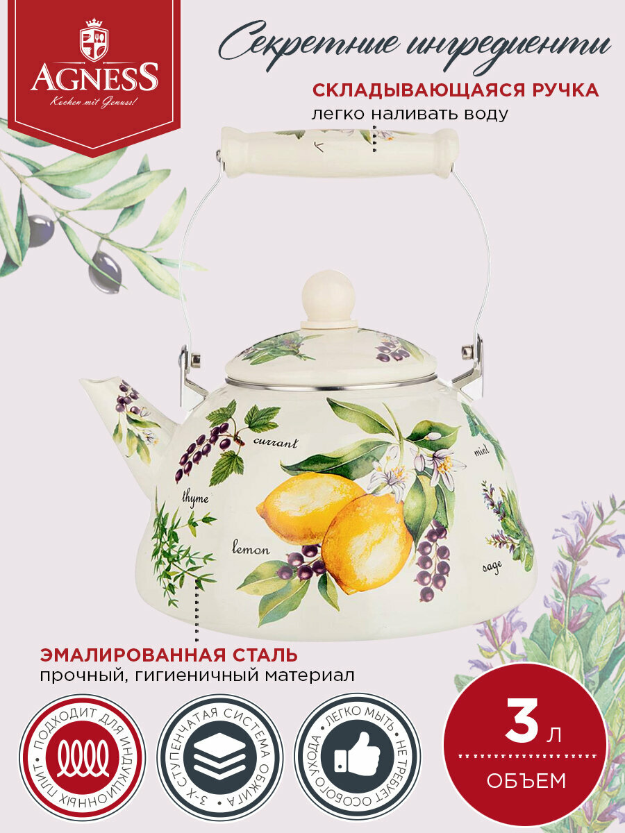 Чайник Agness "Секретные ингредиенты" эмалированный , 3 л (934-422)