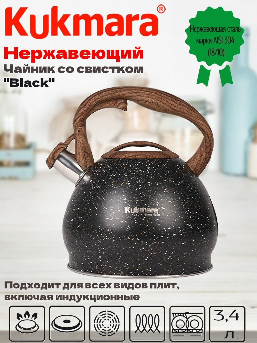 Чайник 3,4л со свистком из нержавеющей стали черный мрамор "Black" kuk-07/3103555 интересное: