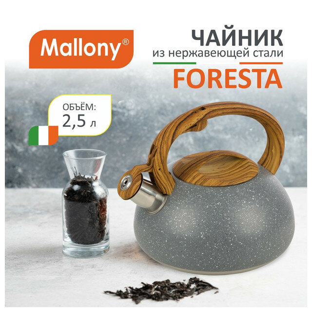 Купить Чайник mallony foresta 2,5л со свистком индукц. нерж.сталь, бакелит