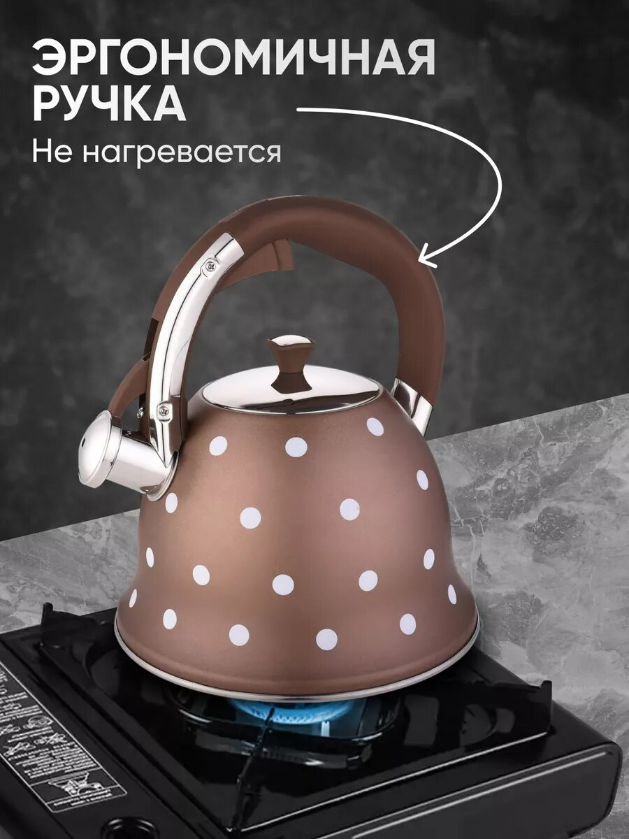 Купить Чайник для плиты со свистком 3 л металлический коричневый