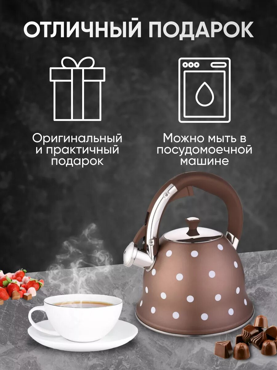СохранитьЧайник для плиты со свистком 3 л металлический коричневый интересное: