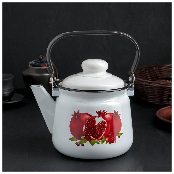 Чайник эмал. 01-2708/4 магнитогорская эмаль 1,5л бел. "Гранаты" сталь