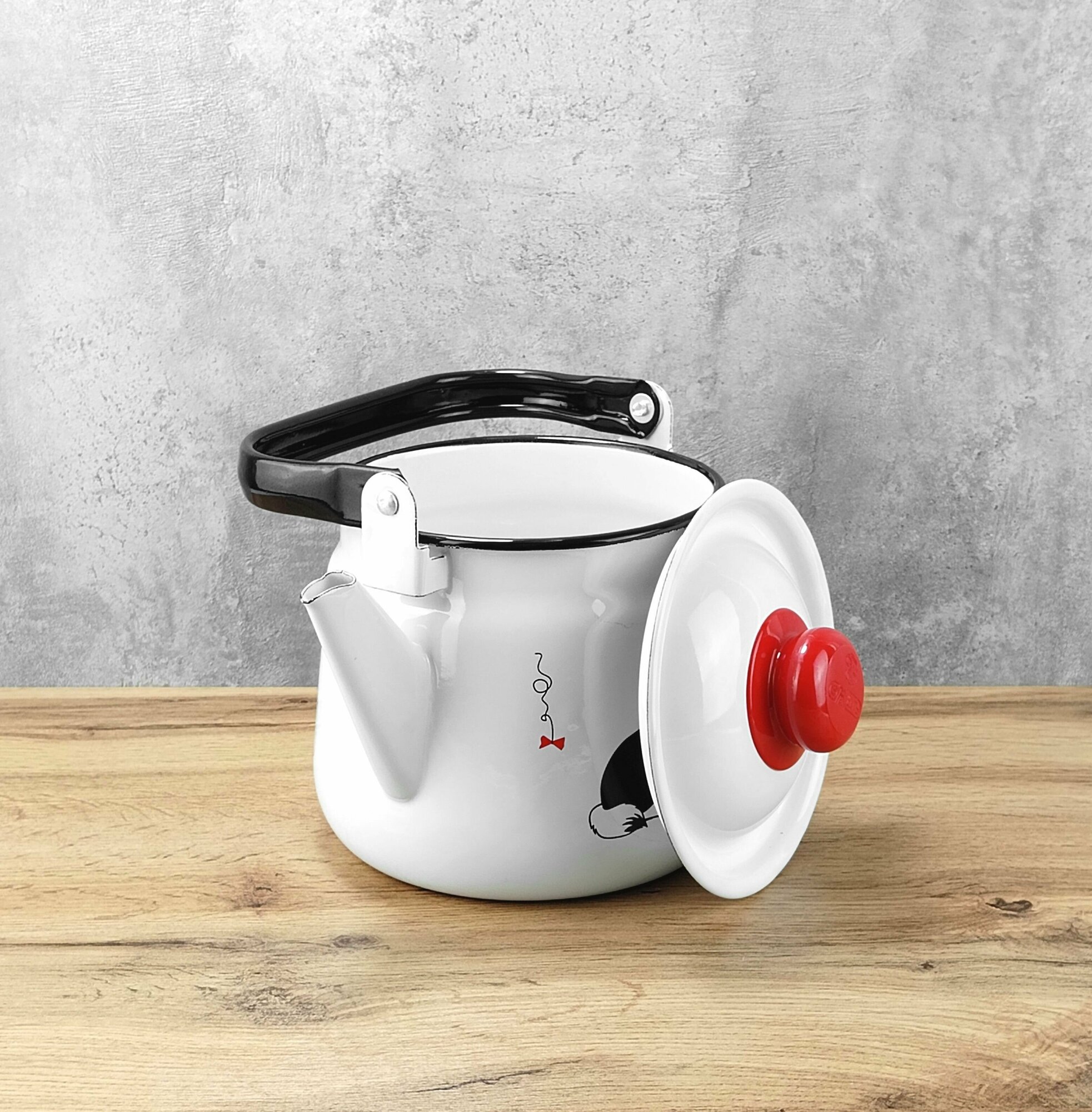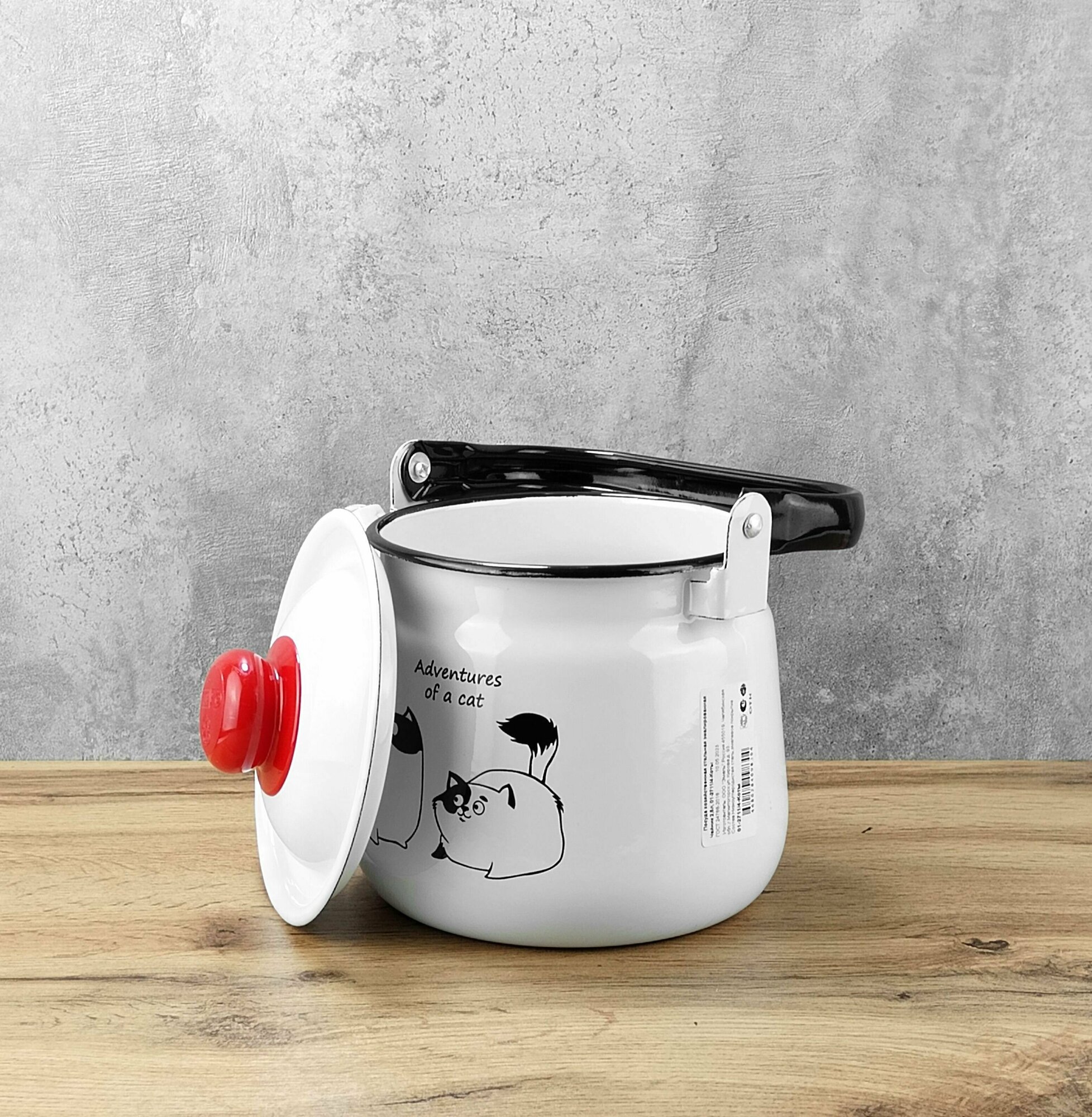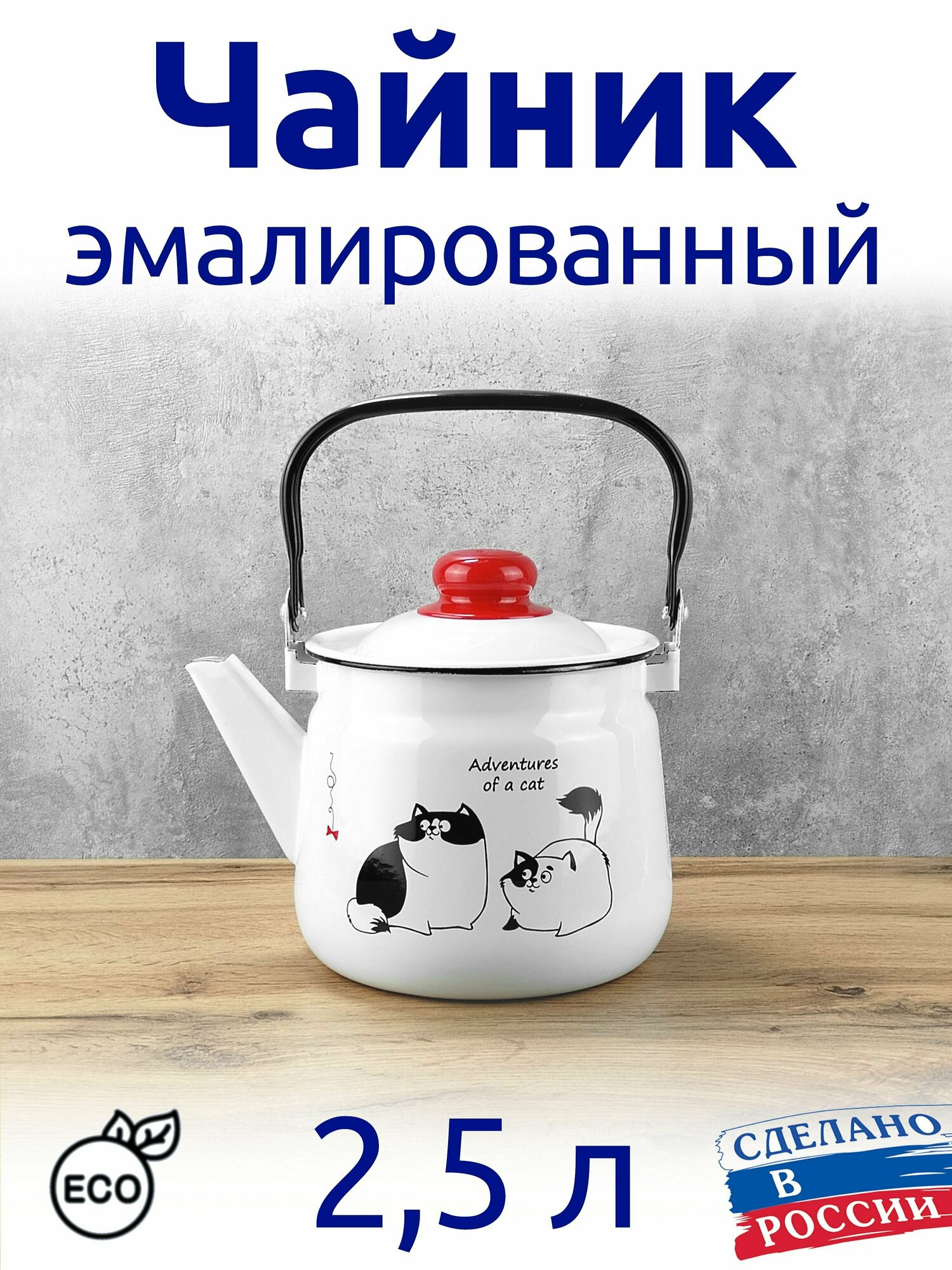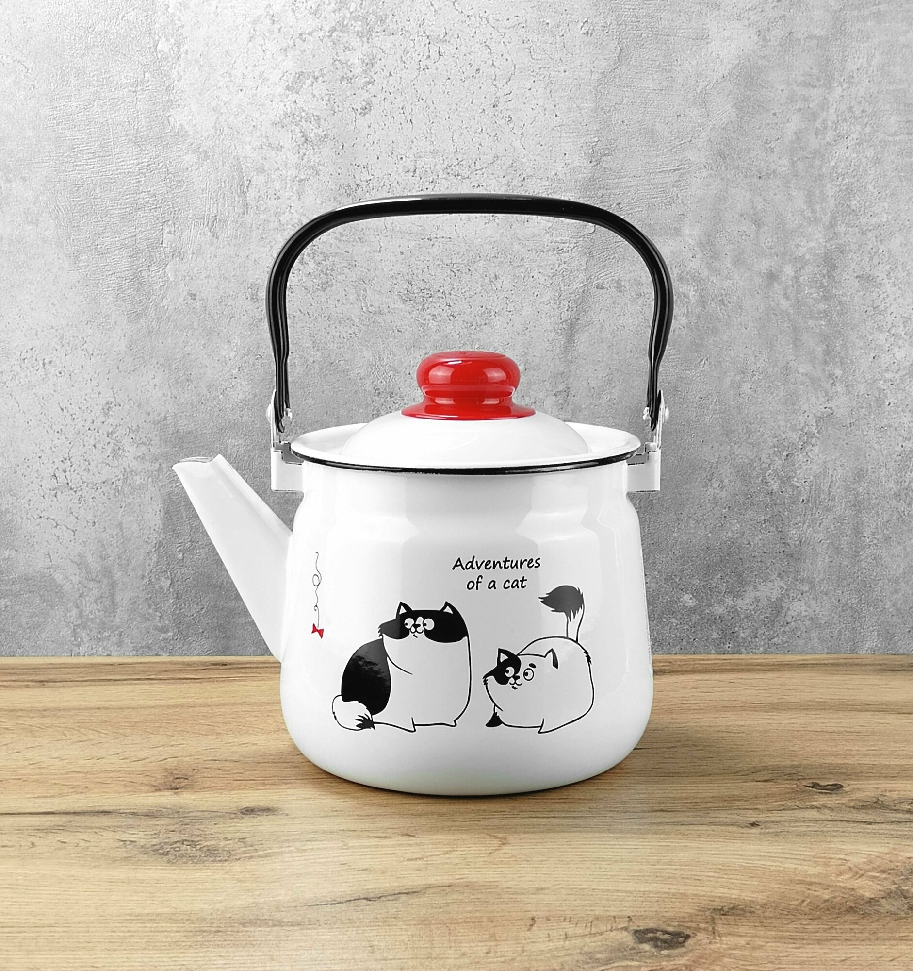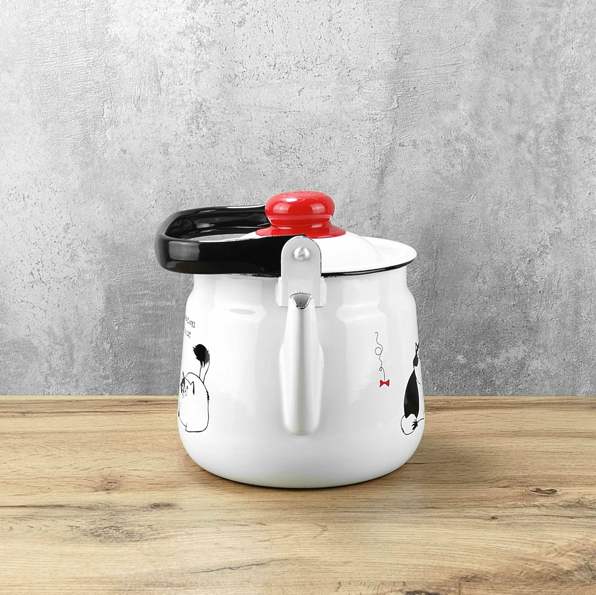 Чайник эмалированный 2,5 л Белый с рисунком "Коты" интересное: