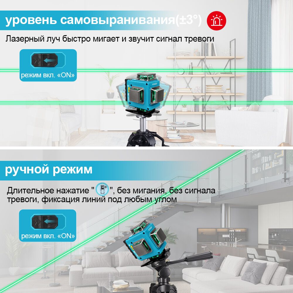Лазерный уровень/нивелир KEZERS K36GD, Зеленый луч 360 4D 16 Линий,С 2 шт. литиевыми батареями 4000 мАч интересное: