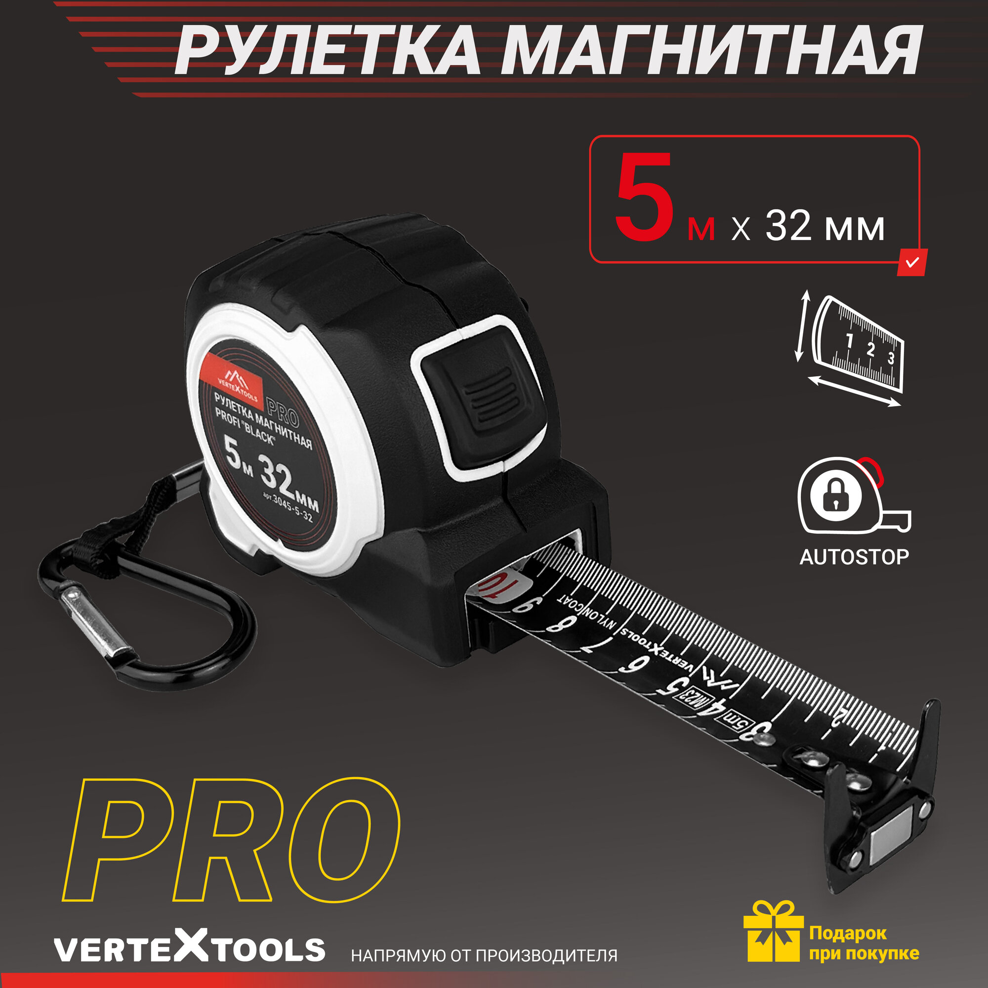 Рулетка магнитная усиленная VertexTools "Black" 5мX32мм интересное: