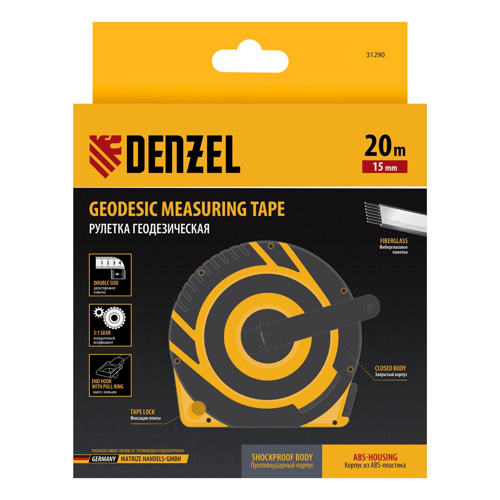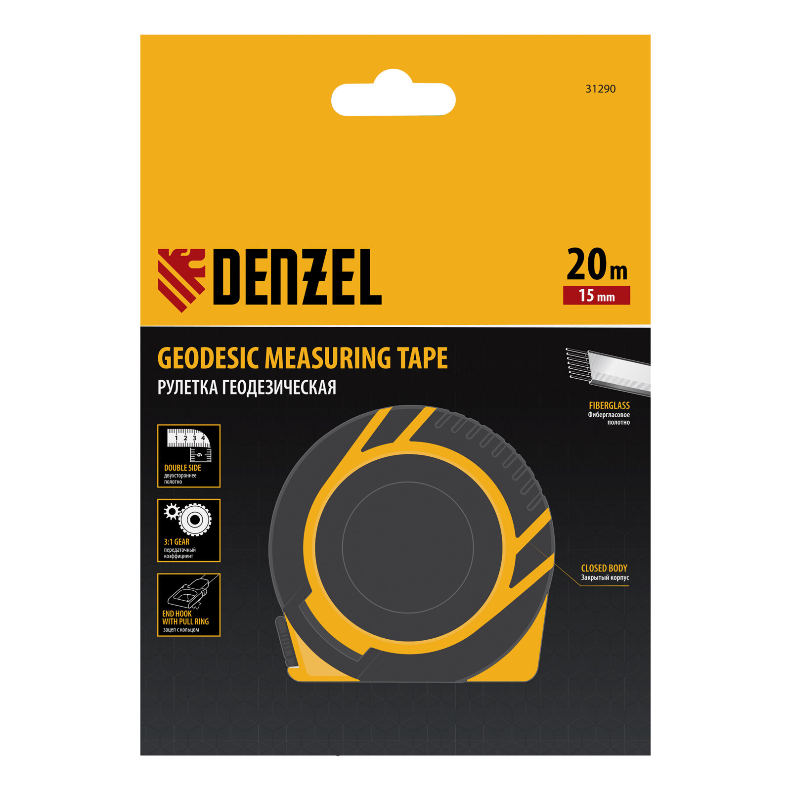 Купить Рулетка геодезическая DENZEL 20 м х 15 мм, закрытый корпус, фиберглассовая лента 31290