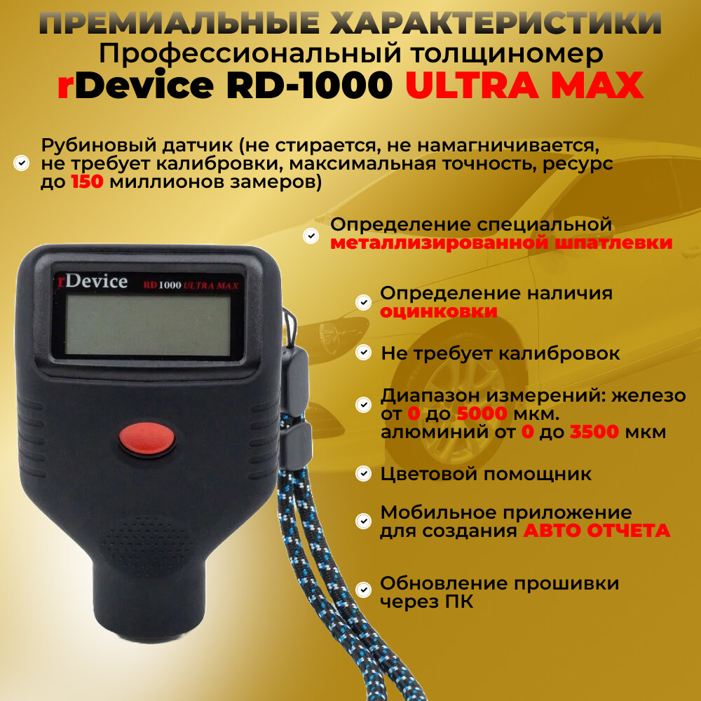 Толщиномер rDevice RD-1000 ULTRA MAX, диапазон от 0 до 5500 мкм, магнитная шпатлевка, оцинковка, приложение (+ максимальный функционал) интересное: