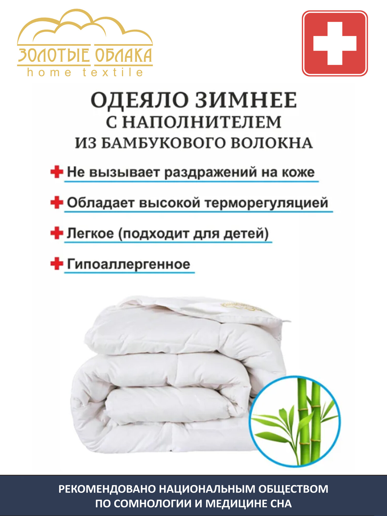 СохранитьОдеяло 2 спальное Золотые облака "Бамбук" 172х205 см / Демисезонное, теплое одеяло с гипоаллергенным наполнителем из бамбукового волокна интересное: