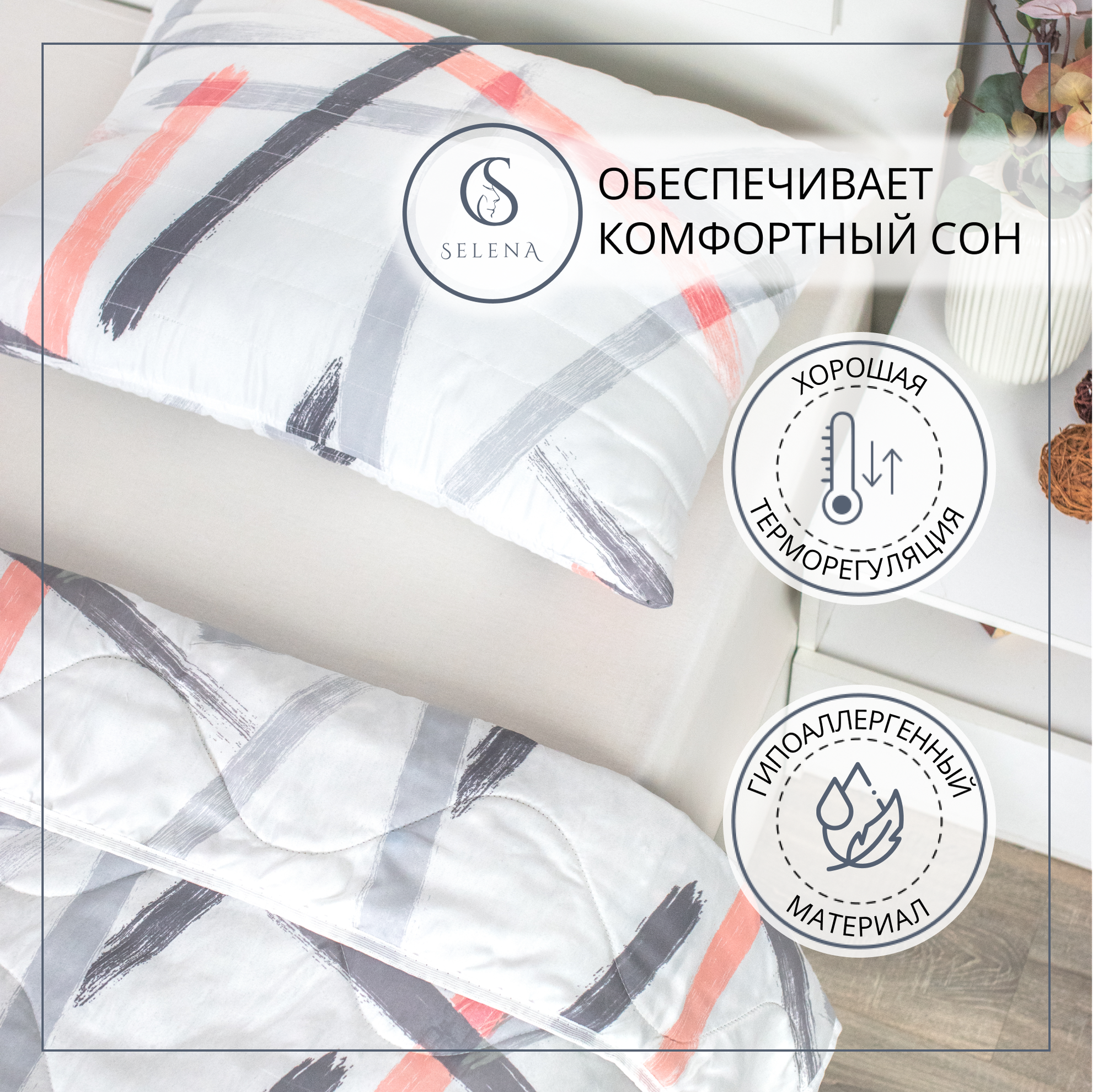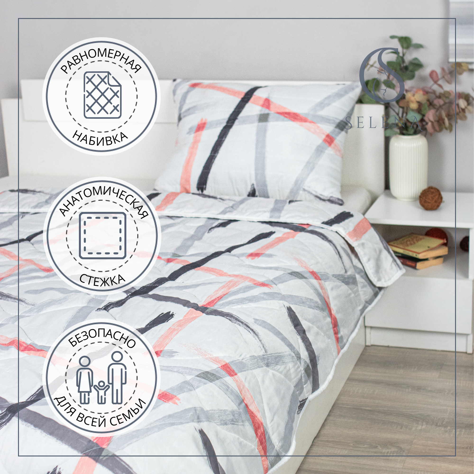Комплект 2 в 1 одеяло 1,5сп + подушка стеганая 50х70 см Лиссеро 2 в 1, 1,5-сп. интересное: