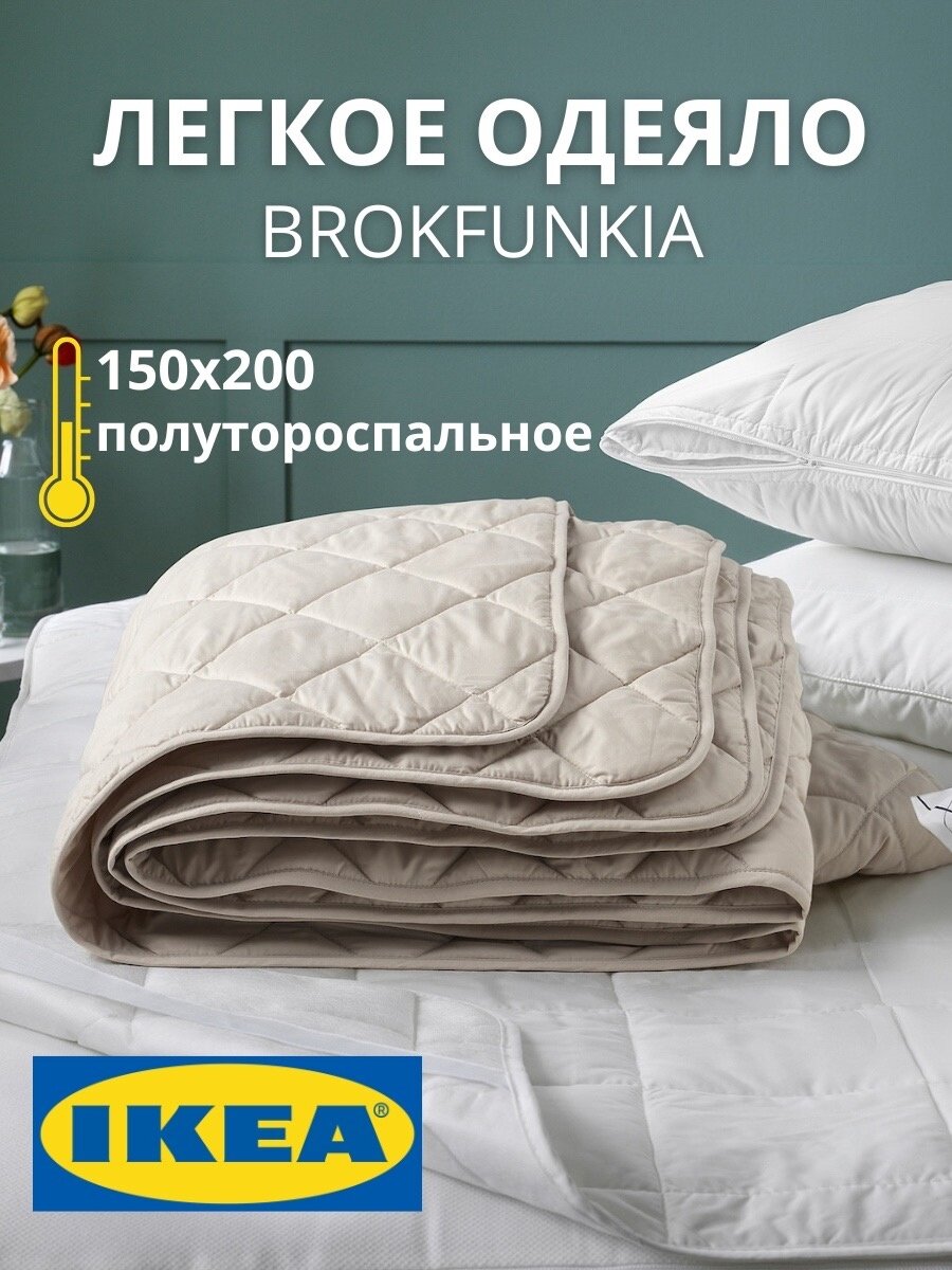 Одеяло IKEA BROKFUNKIA, облегченное, 1.5-спальное, бежевое, 150 х 200 см