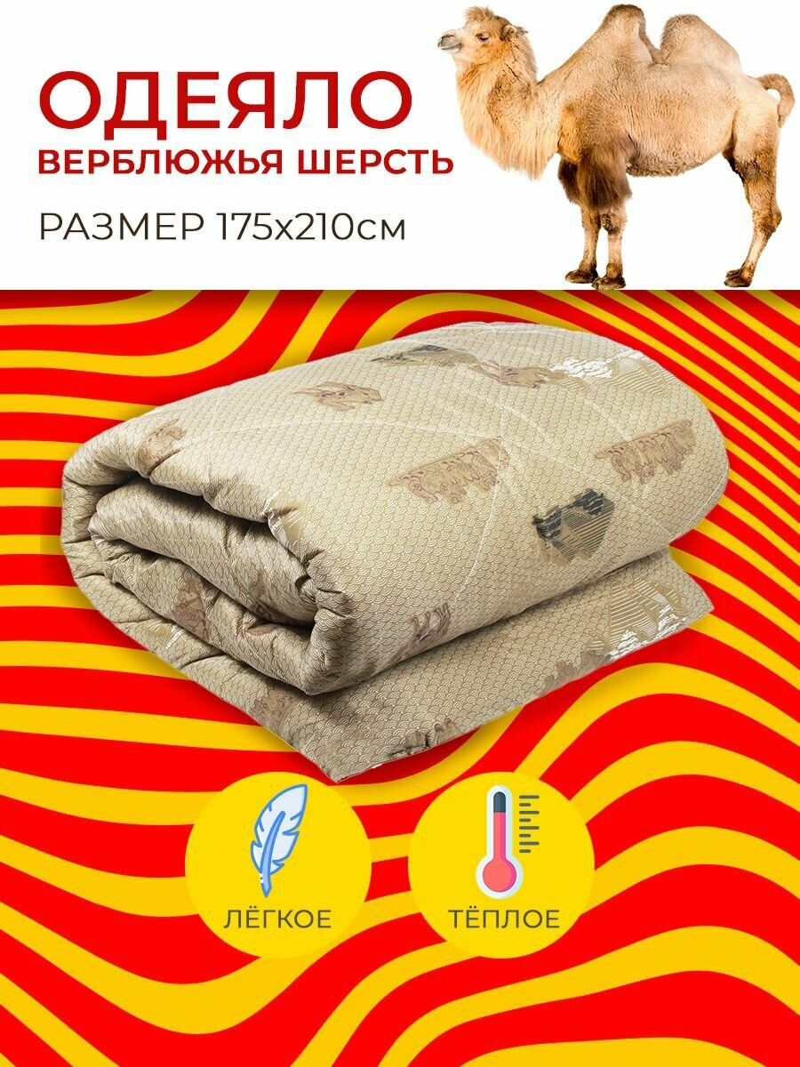 Одеяло теплое Верблюжья шерсть 175х210 см всесезонное для детей и взрослых, легкое и не толстое интересное: