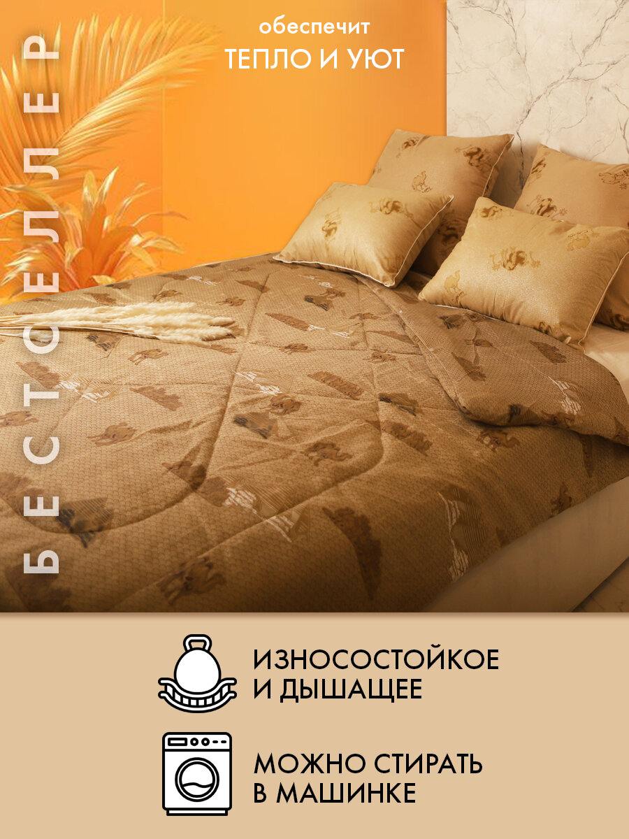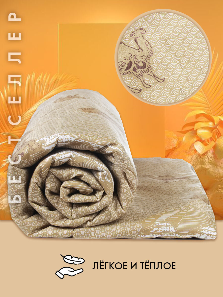 Одеяло теплое Верблюжья шерсть 200х220 см всесезонное для детей и взрослых, легкое и не толстое интересное: