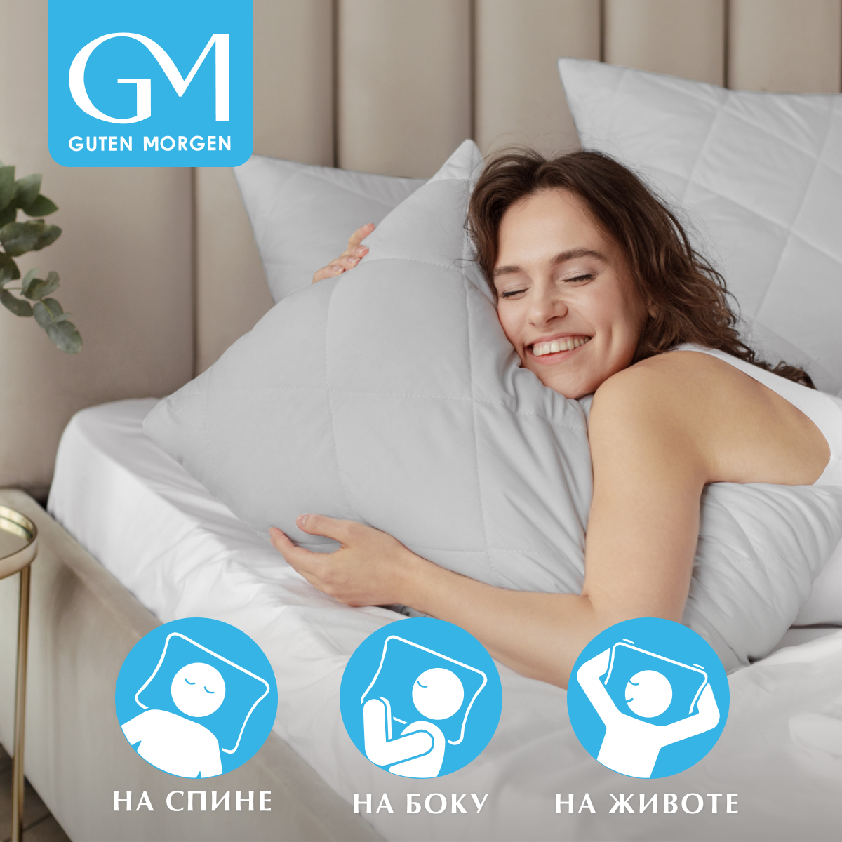 Подушка 50х70 стеганая, Guten Morgen, Холлофайбер, Микрофибра, Softt цвет: Серый интересное: