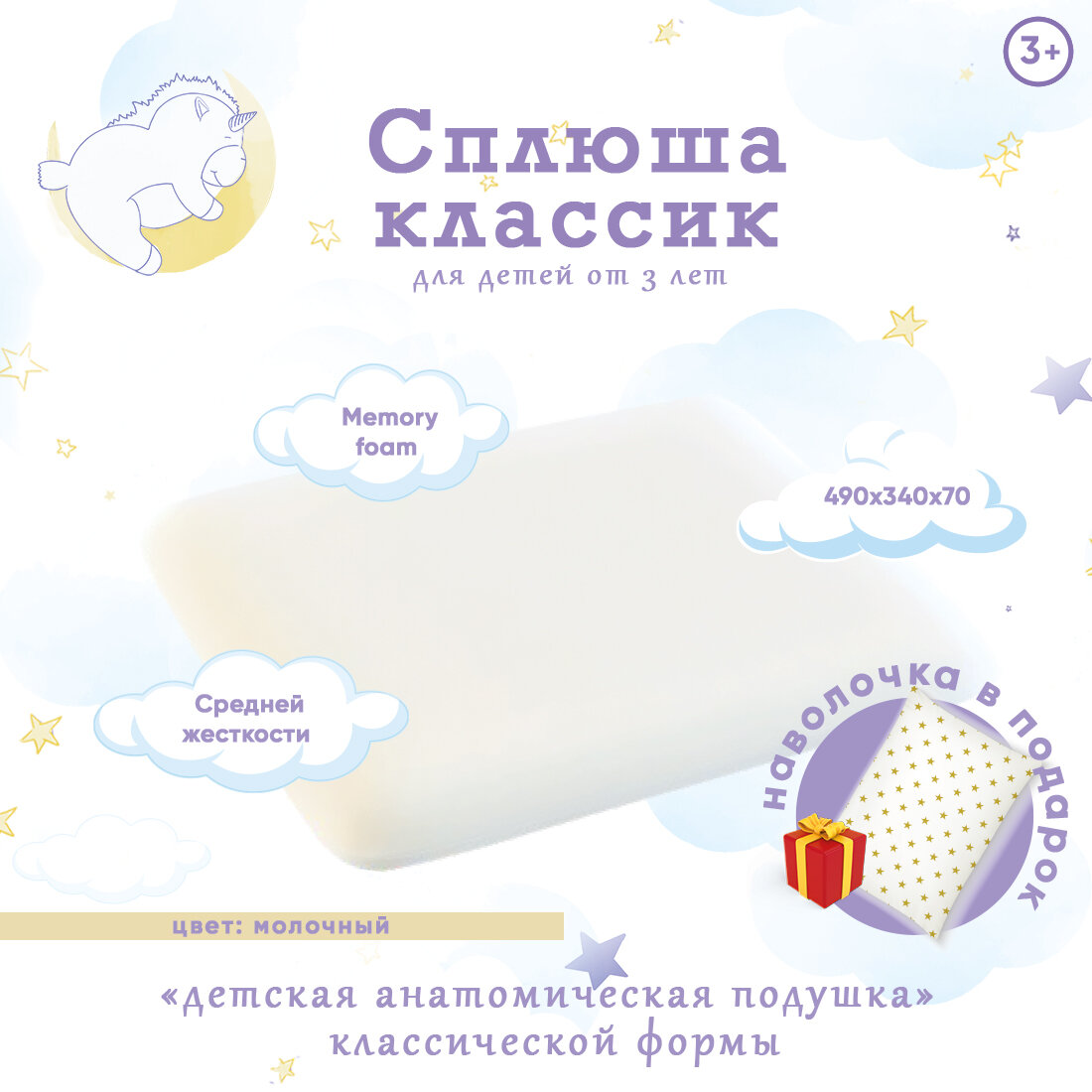 Детская подушка Сплюша Классик от 3 лет, молочный, 35x50 интересное: