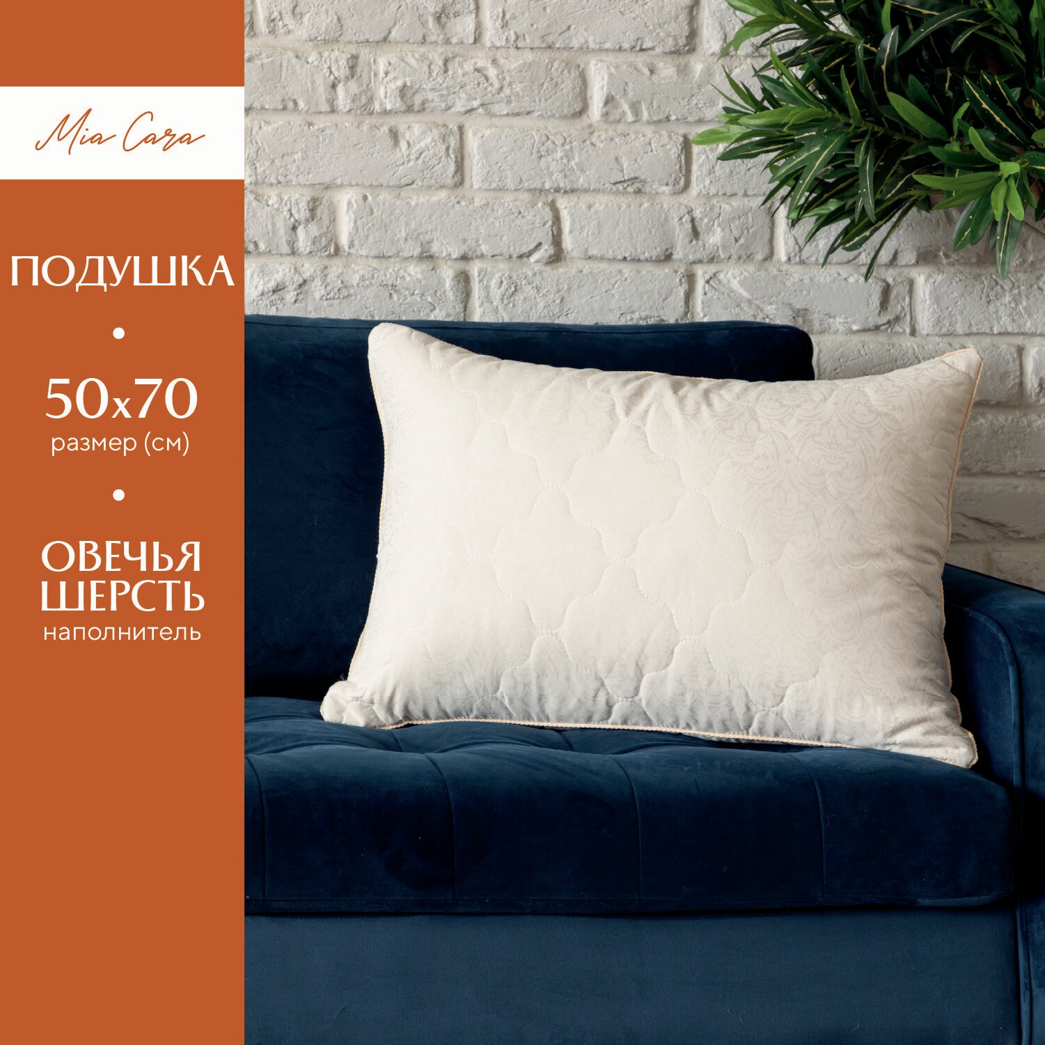 Подушка для сна 70х70 овечья шерсть "Mia Cara" wellness размер 70х70 наполнитель овечья шерсть