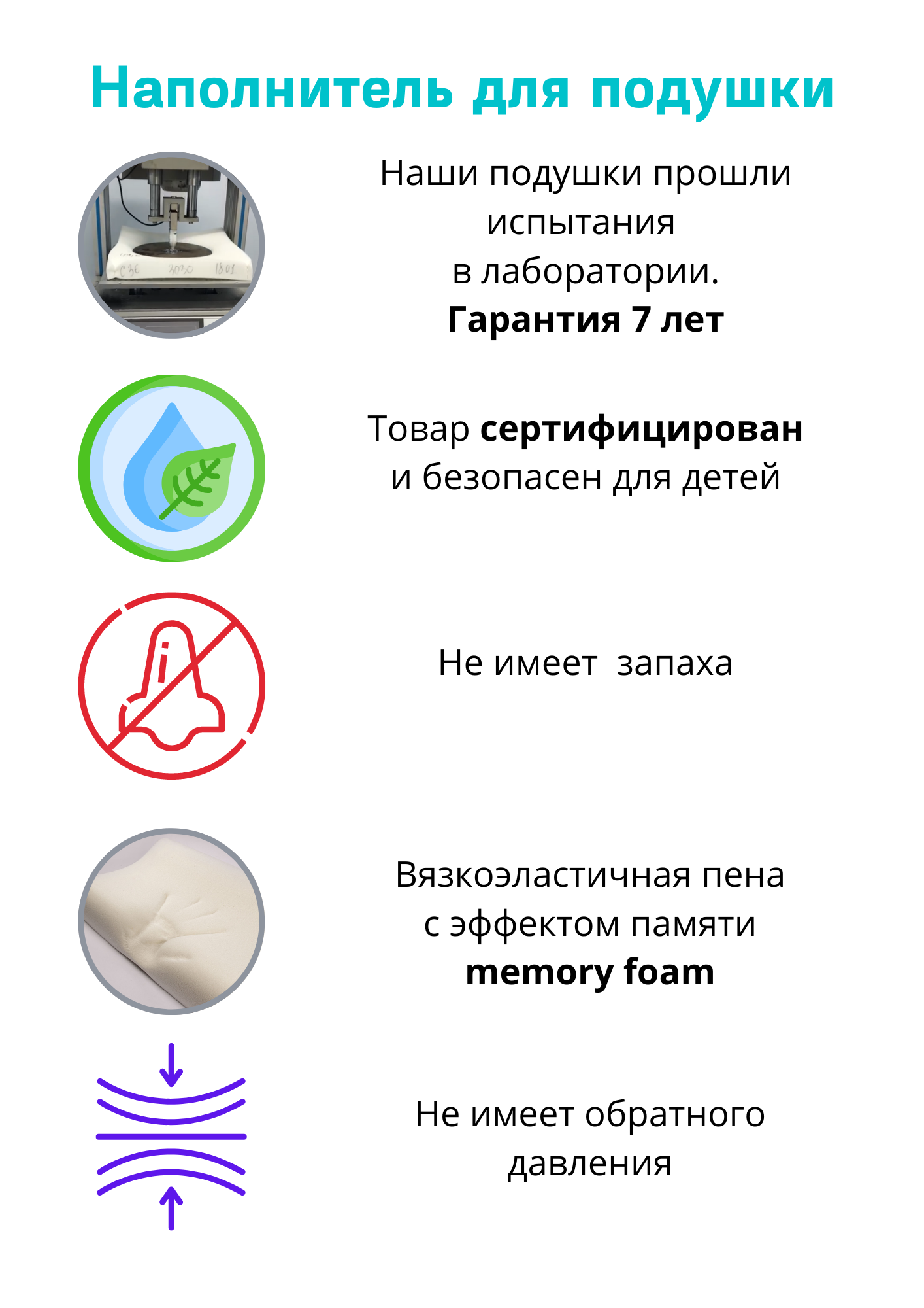 | Особенности | валики разной высоты / гипоаллергенная / против морщин / с кантом / съемный чехол / эффект памяти |