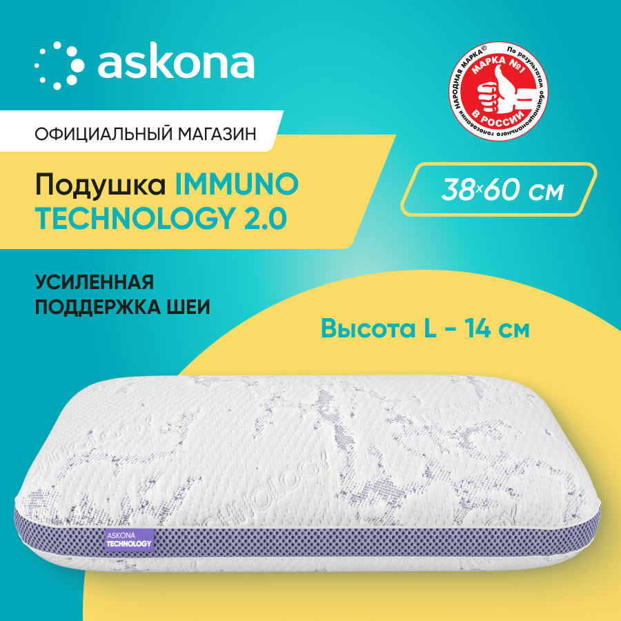 Подушка анатомическая Askona (Аскона) Immuno серия Technology 2.0 L интересное: