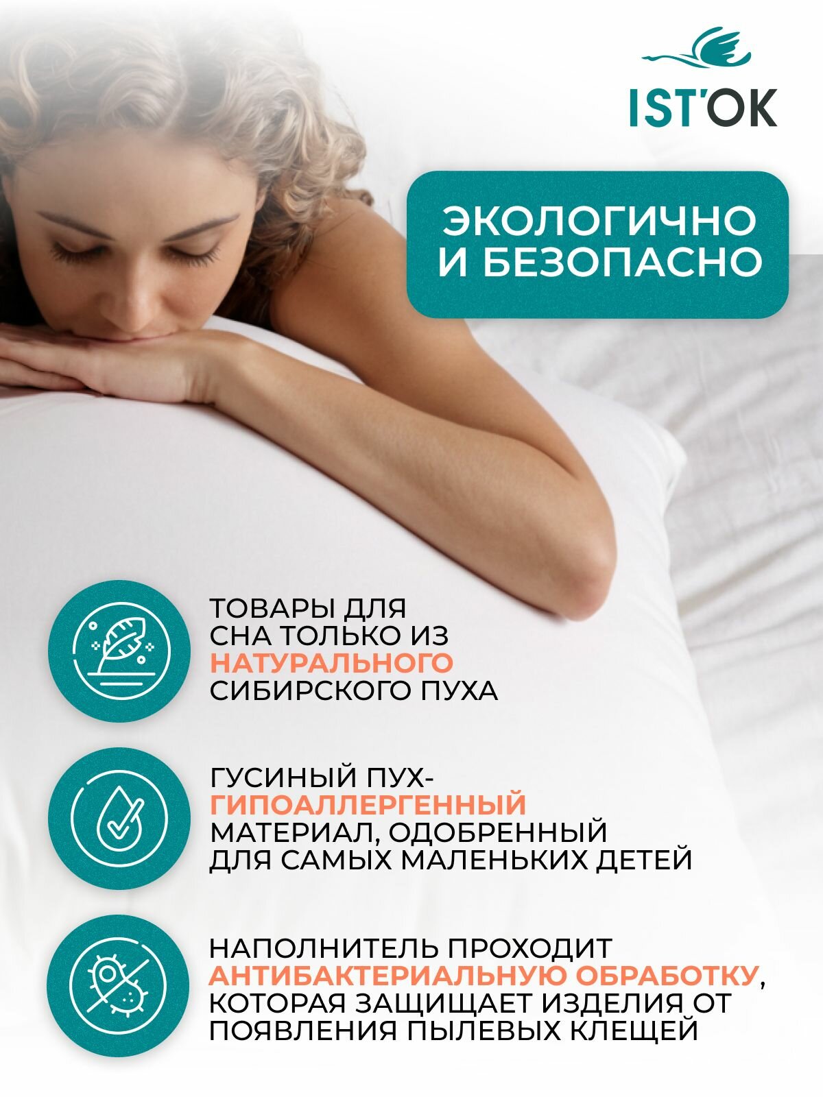 Подушка 70х70 IST'OK 3х камерная. Пух/Перо гусиный. интересное:
