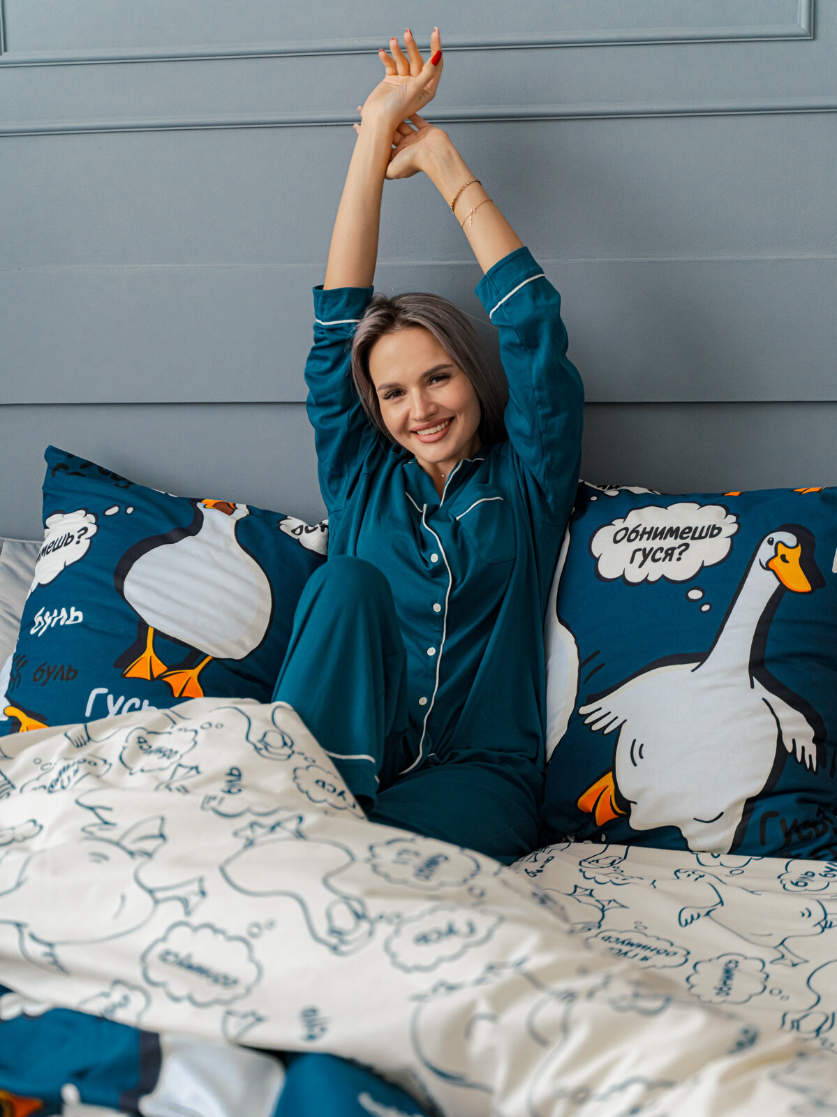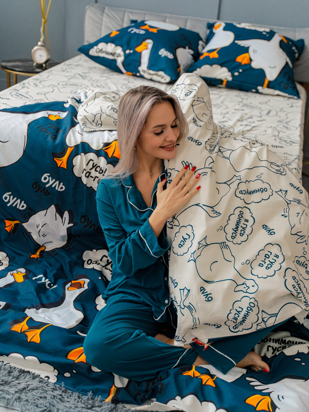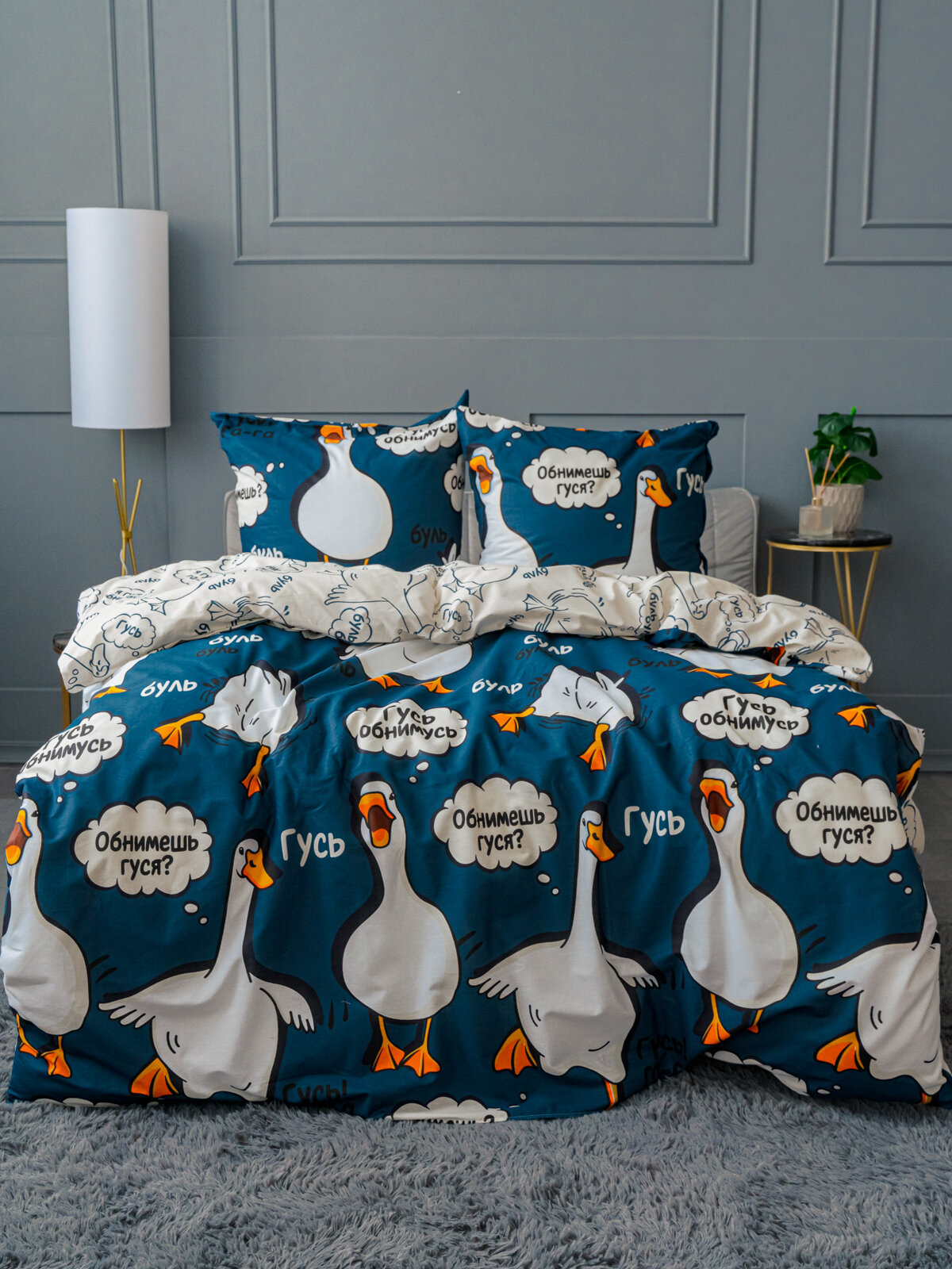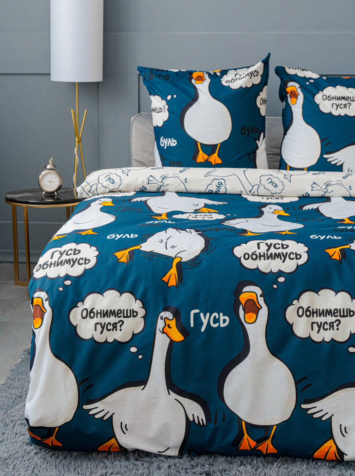 Постельное белье 1.5 спальное Павлинка "Гусь-обнимусь" синий, бязь 100% хлопок
