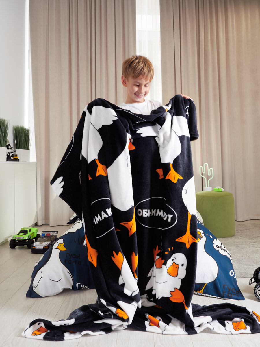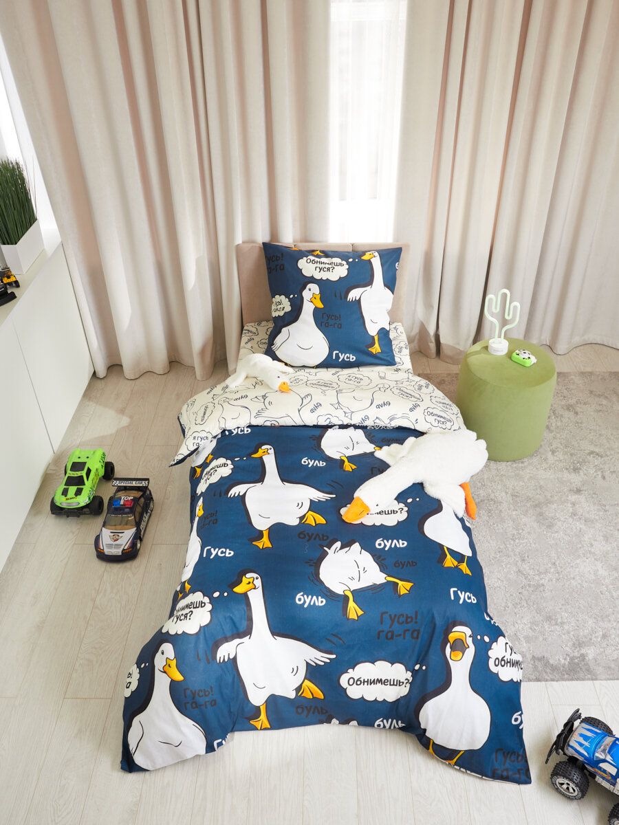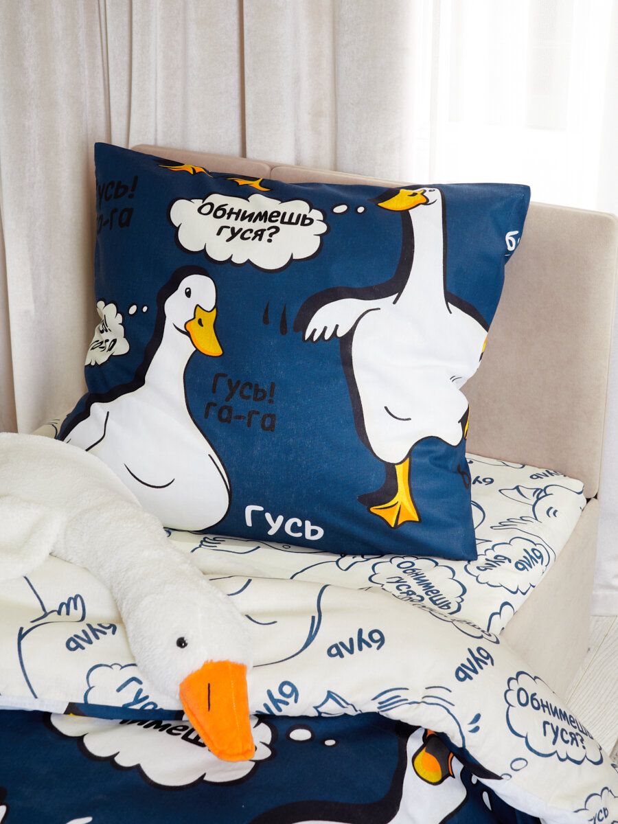 Постельное белье 1.5 спальное Павлинка "Гусь-обнимусь" синий, бязь 100% хлопок интересное: