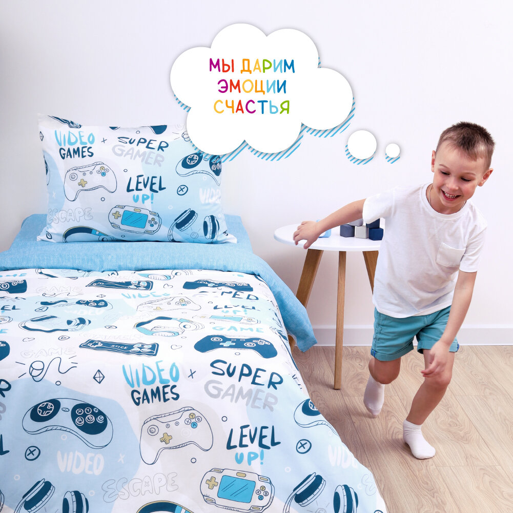 СохранитьПостельное белье для детей Minki, 1,5-спальное, Перкаль, Левел интересное:
