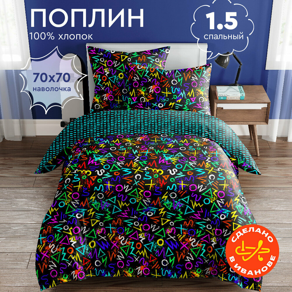СохранитьПостельное белье для детей Василек из поплина, 100% хлопок, 1,5 спальное с наволочкой 70х70 см, Неон интересное: