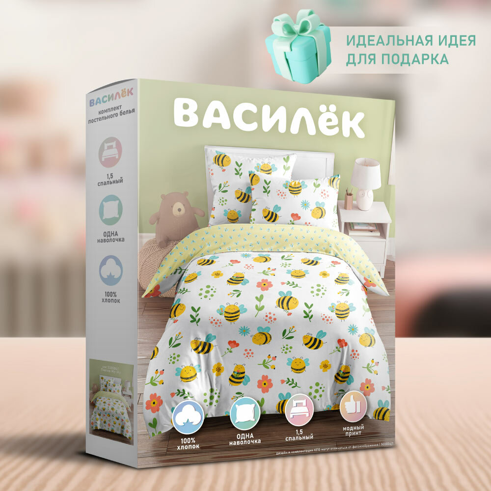 Купить Постельное белье "Василек" 1,5-спальное Поплин Пчелка Жу жу