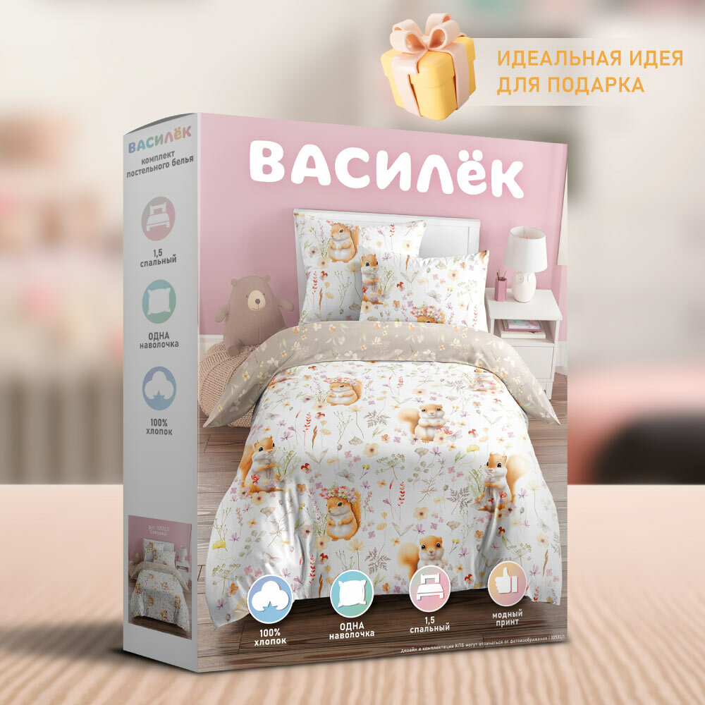 Постельное белье для детей Василек из поплина, 100% хлопок, 1,5 спальное с наволочкой 70х70 см, Элафи