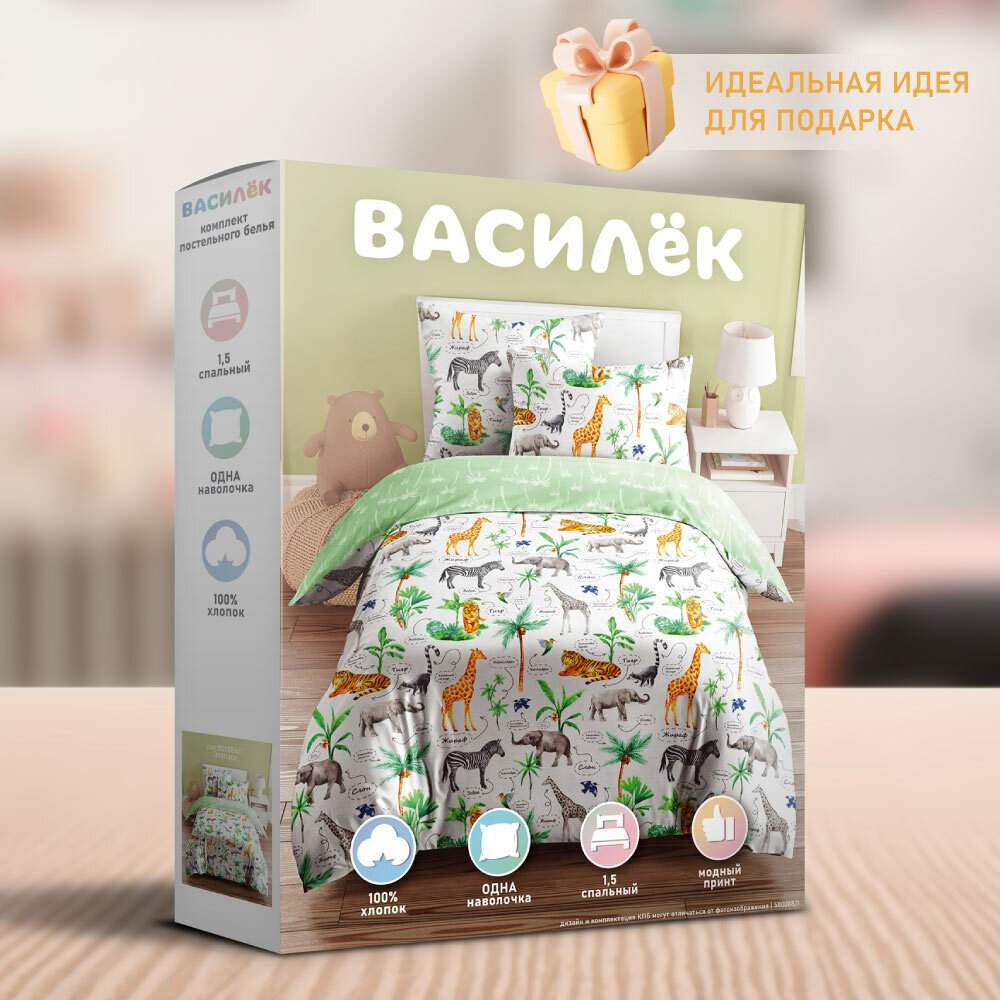 СохранитьПостельное белье "Василек" 1,5-спальное Поплин Зоопарк интересное: