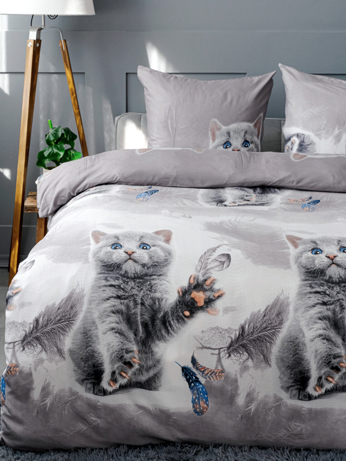 Постельное белье 1.5 спальное Павлина Котик, Полисатин, наволочки 70x70 интересное: