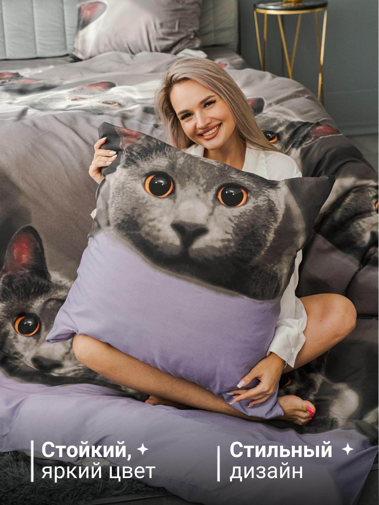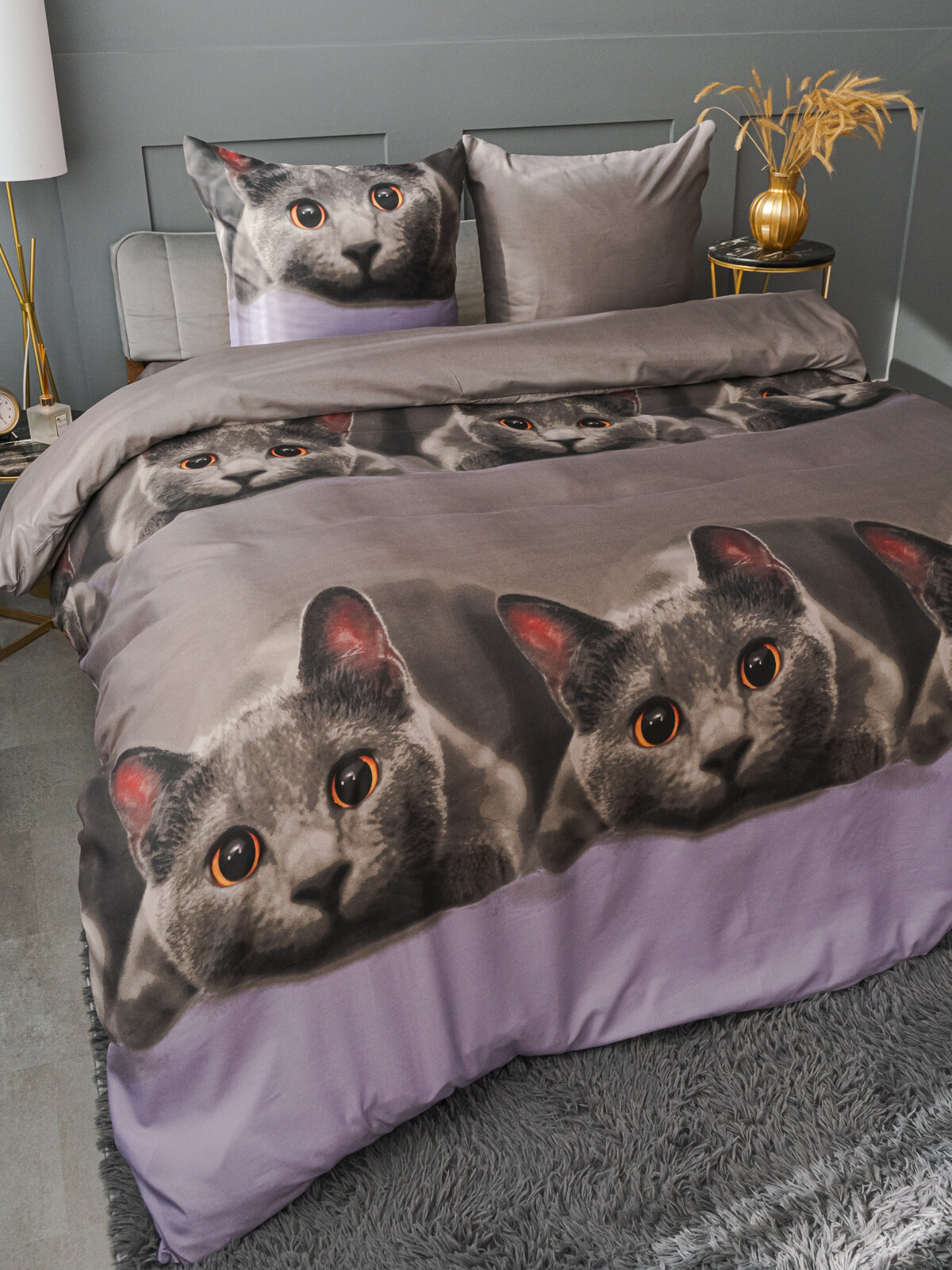 Постельное белье евро макси Павлина Серый котик, Полисатин, наволочки 70x70