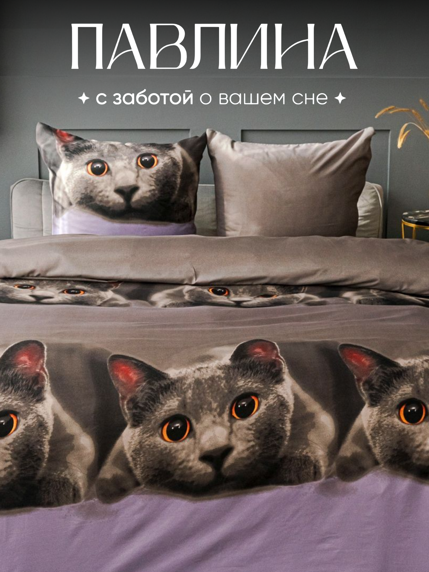 СохранитьПостельное белье 1.5 спальное Павлина Серый котик, Полисатин, наволочки 70x70 интересное: