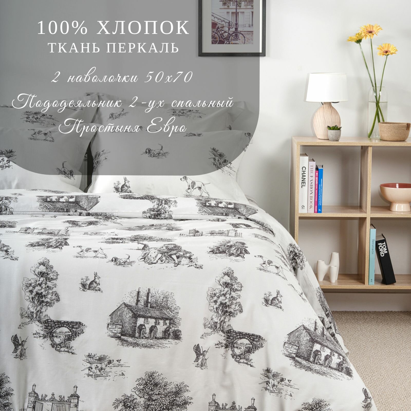 Постельное бельё/евро/комплект/простынь 220х240/пододеяльник 200x215/наволочки 70х70/перкаль/Тюильри/WINDSLOW