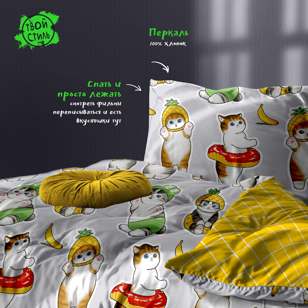 Постельное белье для детей и подростков Твой стиль 1,5-спальное, Перкаль, Мяу