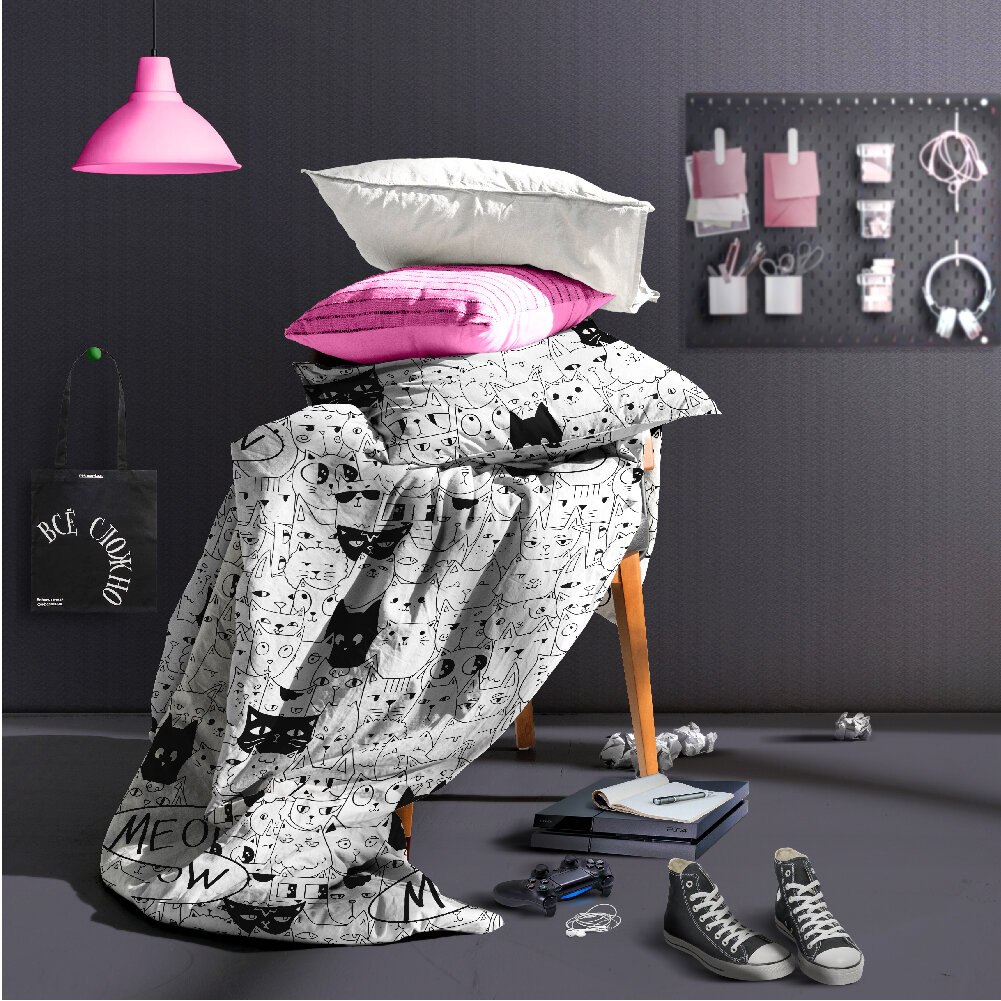 СохранитьПостельное белье для детей и подростков Твой стиль 1,5-спальное, Перкаль, Мяу интересное: