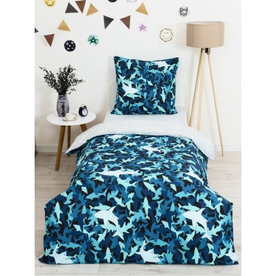 Постельное белье для детей и подростков Твой стиль, 1,5-спальное, Перкаль, Акулы
