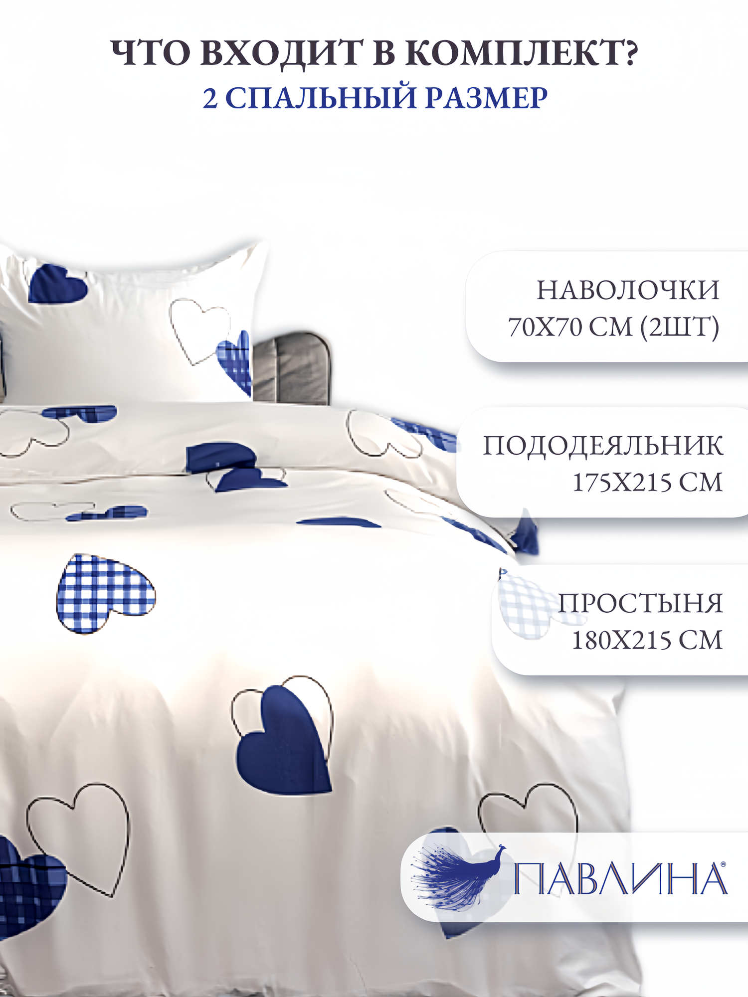 Постельное белье 2 спальное Павлина 251 Сердце, Полисатин, наволочки 70x70 интересное: