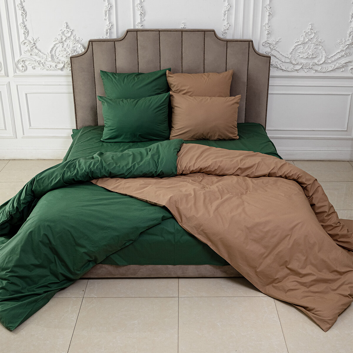 Постельное белье 1,5 спальный размер BRAVO поплин изумруд/ хлопок / наволочки 70х70