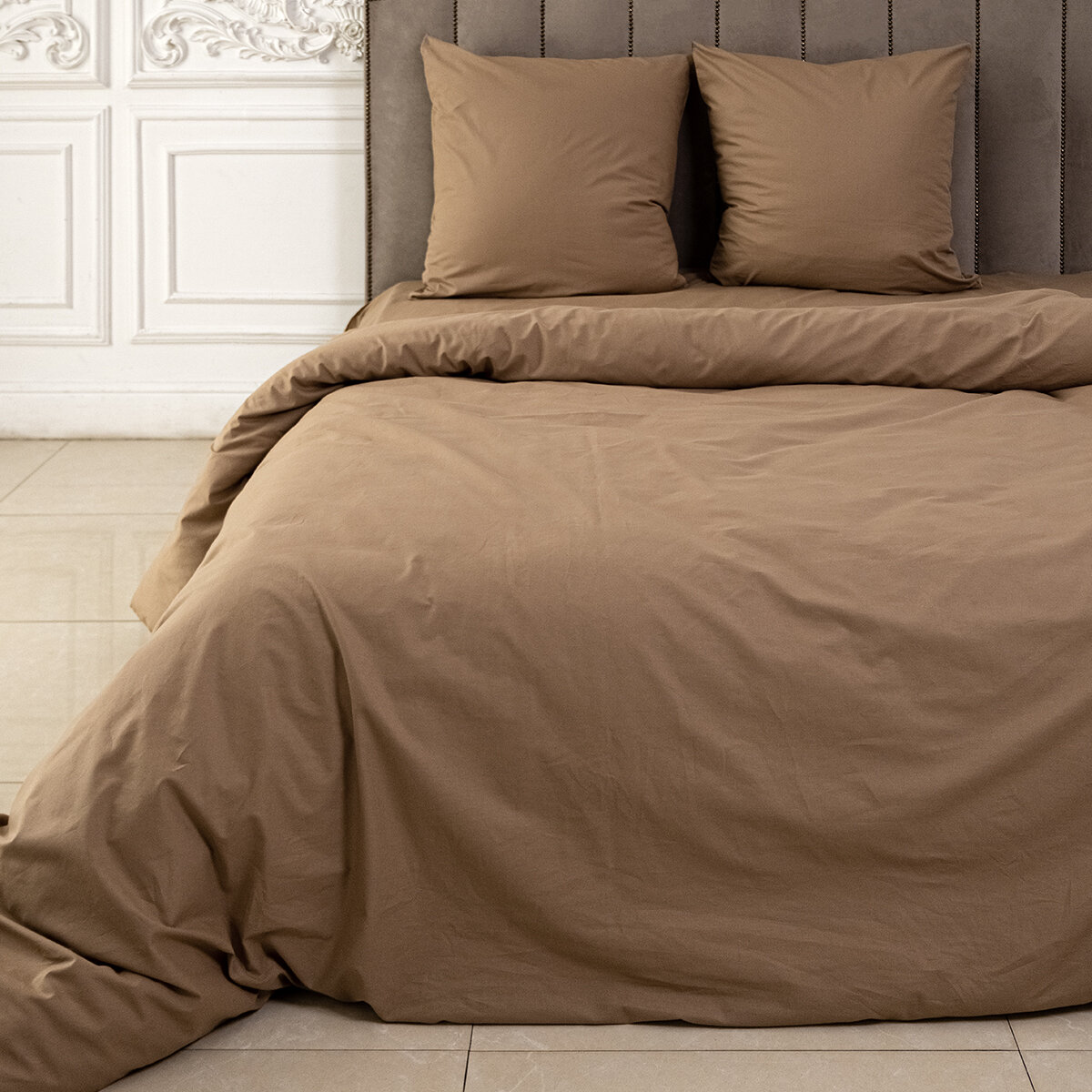 Постельное белье евро BRAVO поплин темно-бежевый/ хлопок / наволочки 70х70