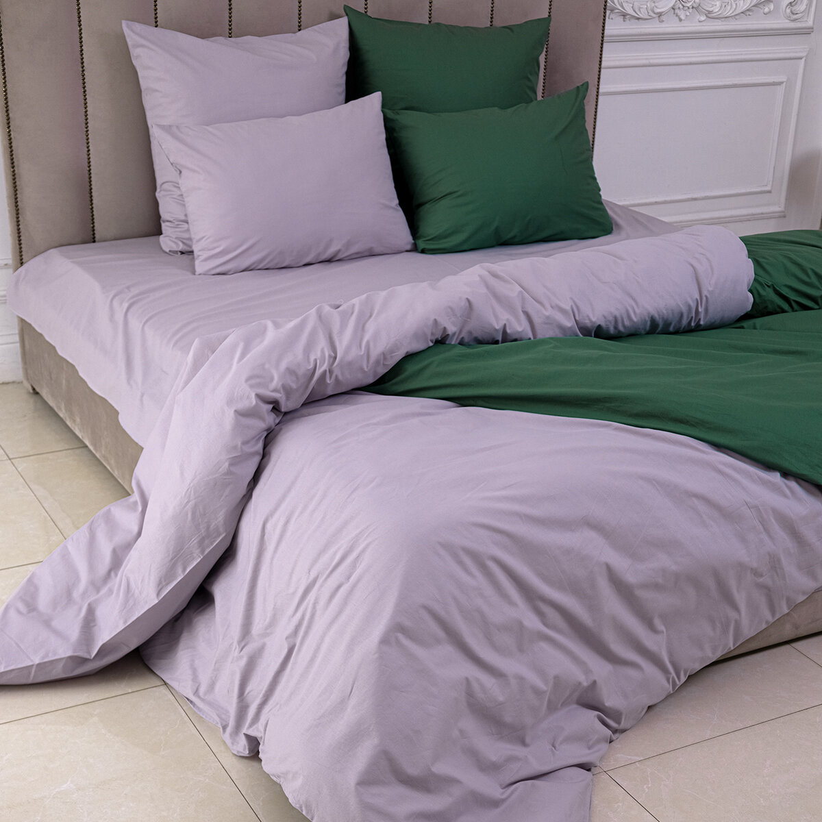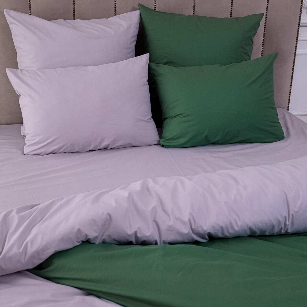 Постельное белье евро BRAVO поплин серо-зеленый/ хлопок / наволочки 70х70