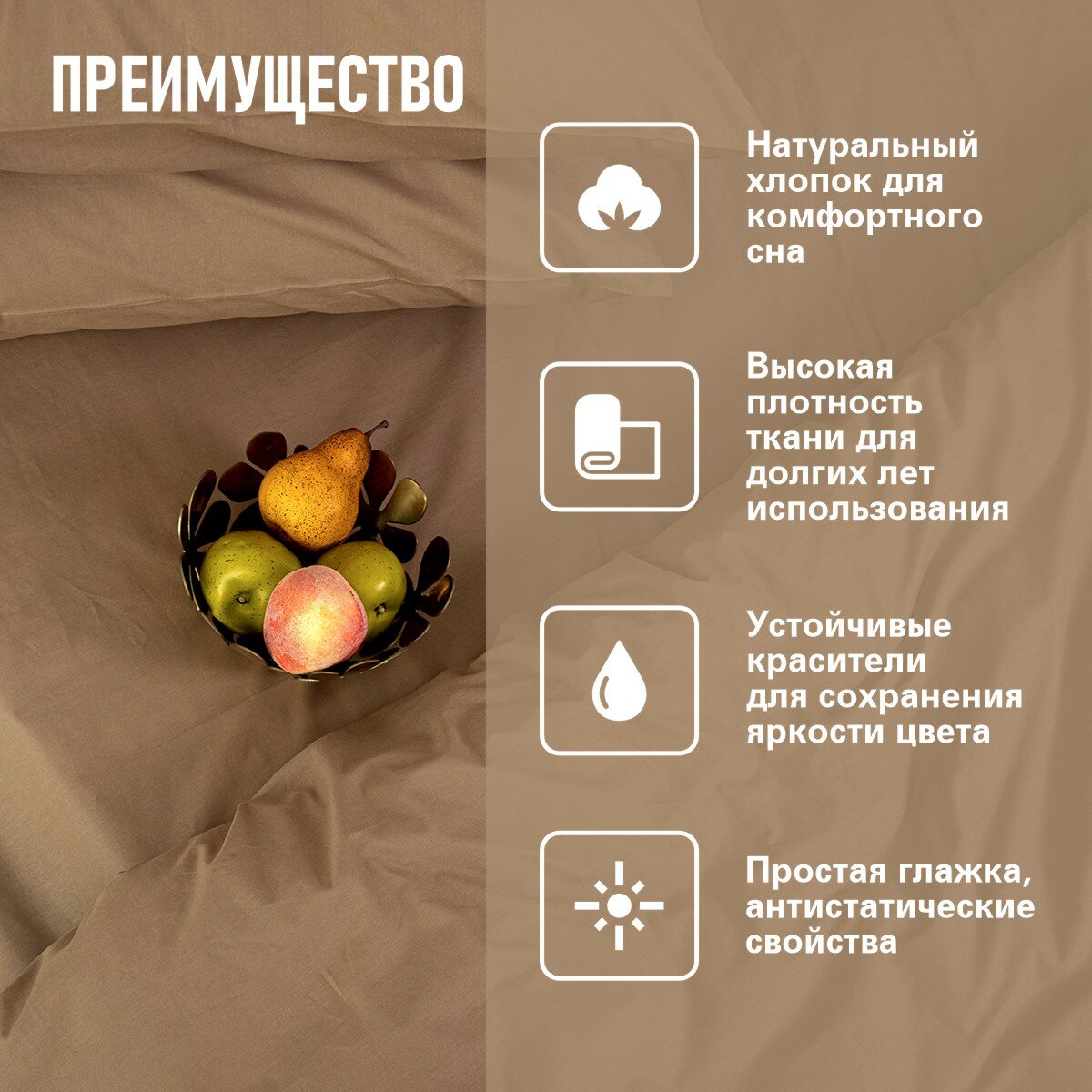 Постельное белье 1,5 спальный BRAVO поплин темно-бежевый/ хлопок / наволочки 70х70