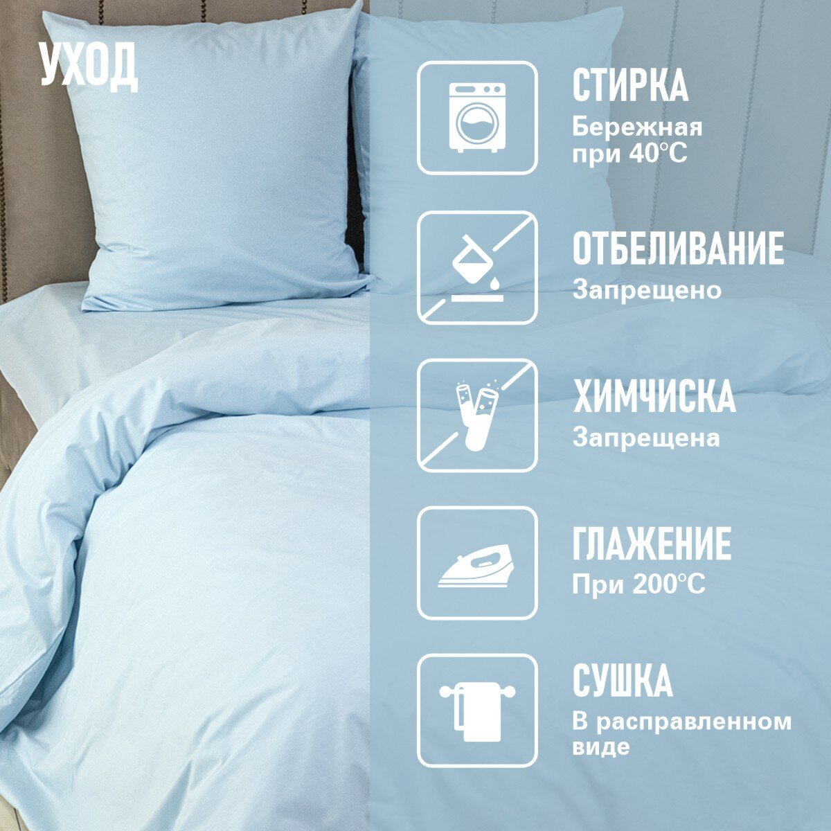 Постельное белье 1,5 спальный размер BRAVO поплин голубой/ хлопок / наволочки 70х70