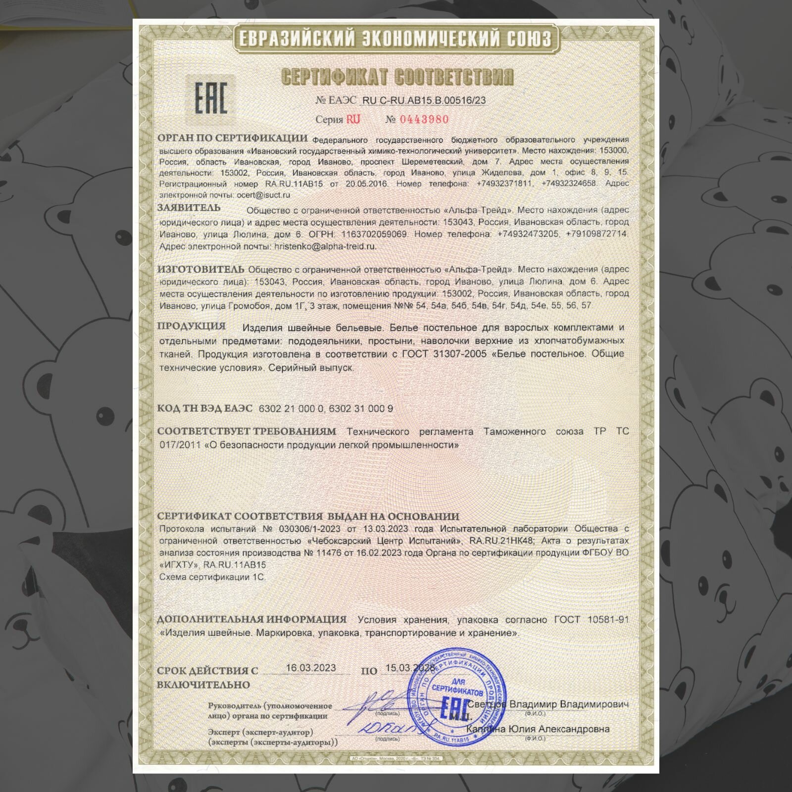 | Плотность ткани | 120 г/м² |