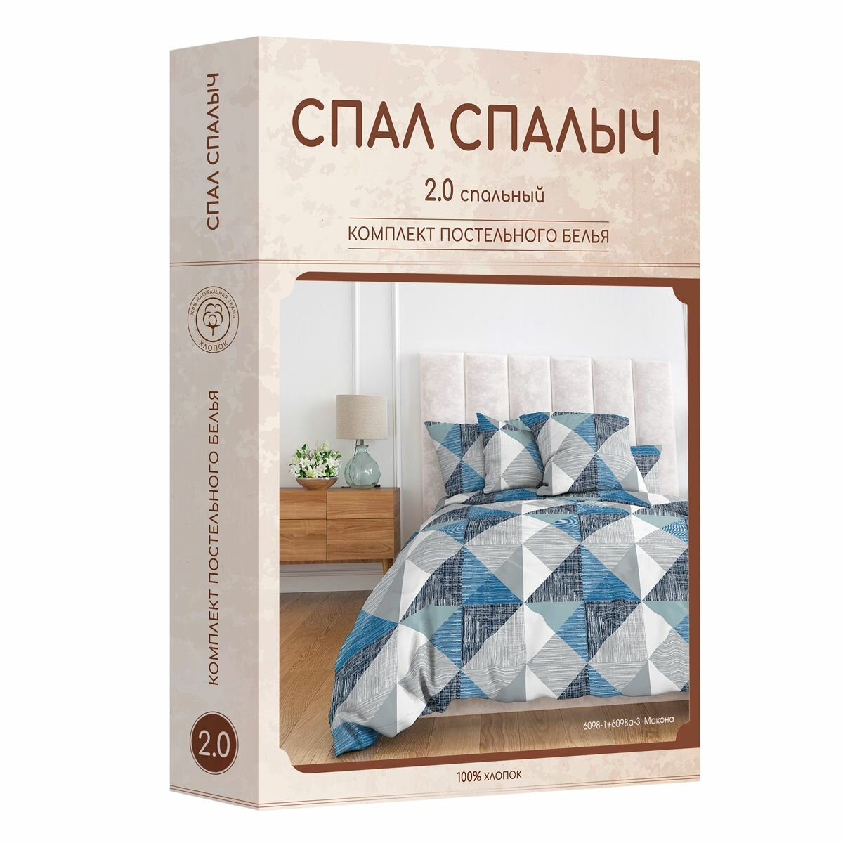 Купить Постельное белье 2 спальный размер спал спалыч бязь Макона синий, хлопок / наволочки 70х70