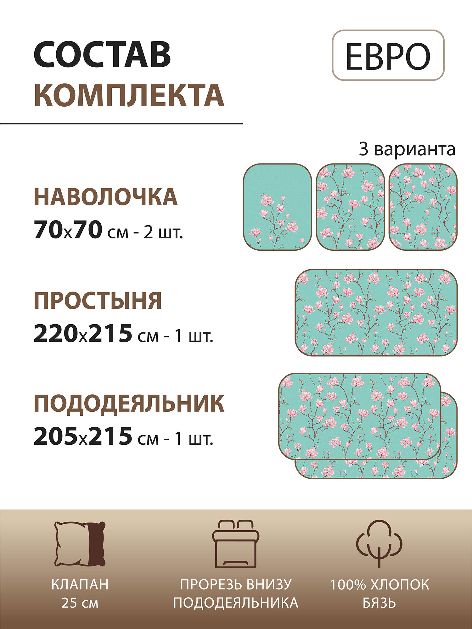 Постельное белье евро спал спалыч бязь Эмма/ хлопок / наволочки 70*70 ./ КПБ Евро размер от 200х220