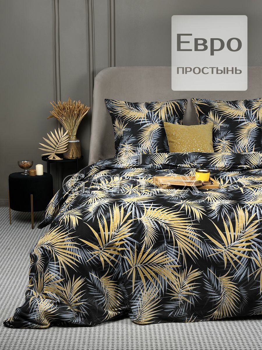 Постельное белье 2 спальное /Комплект постельного белья 2-спальный (евро простыня) Galtex Комфорт бязь Тропикана, Вид черный интересное: